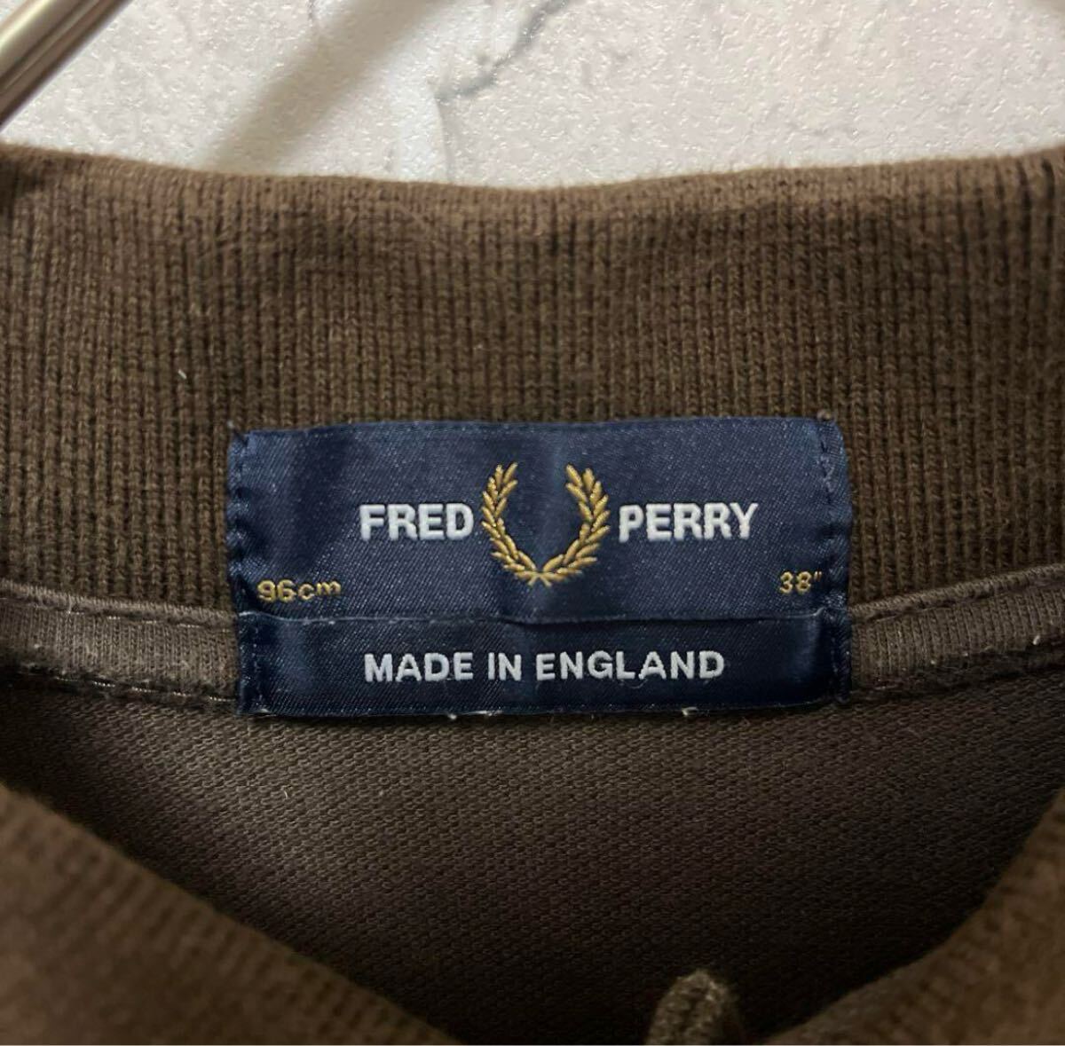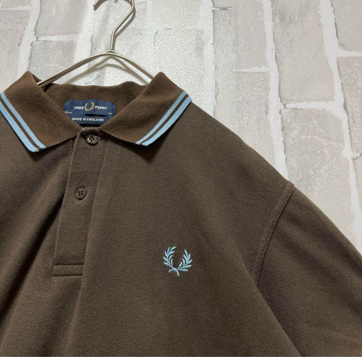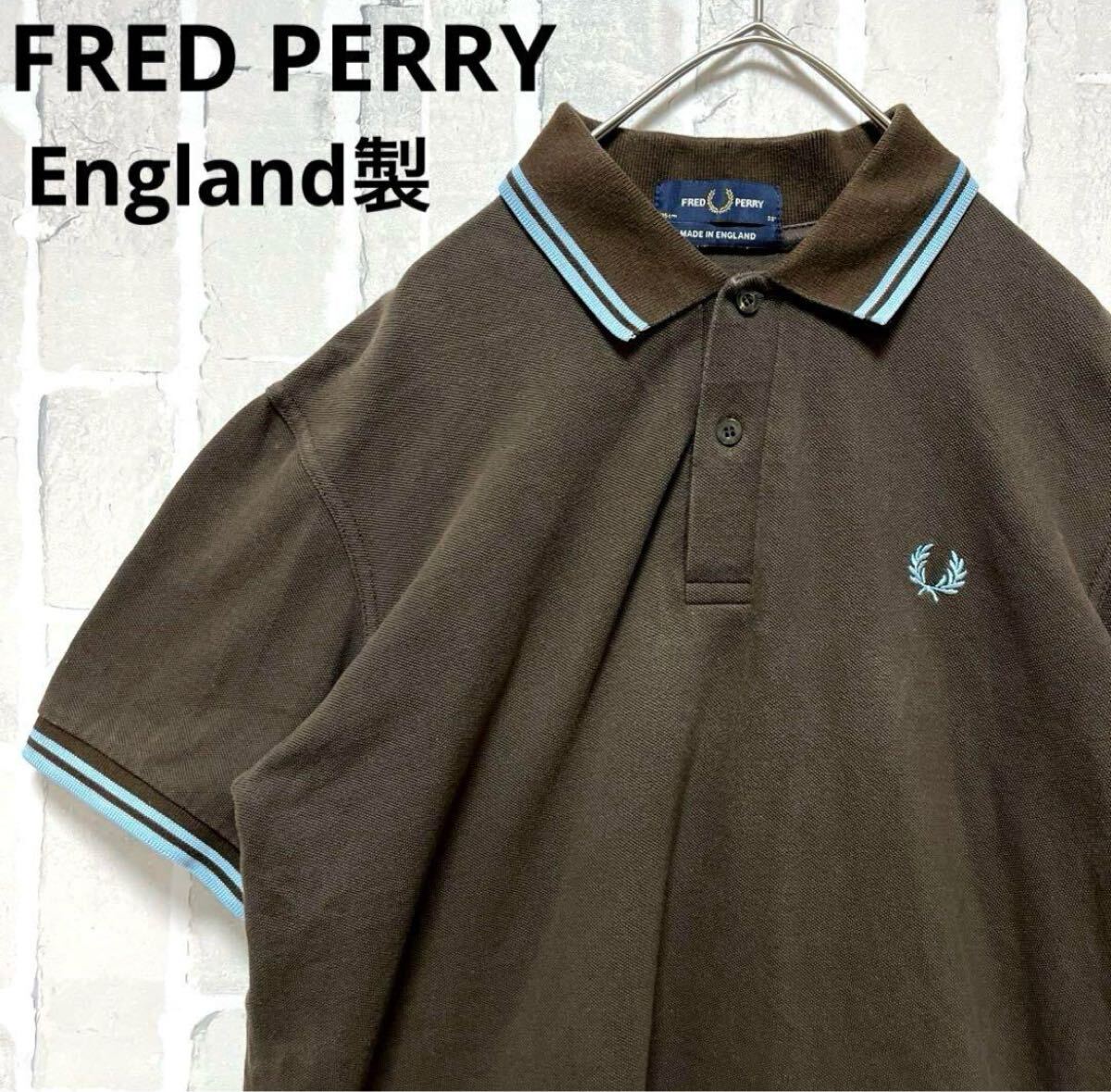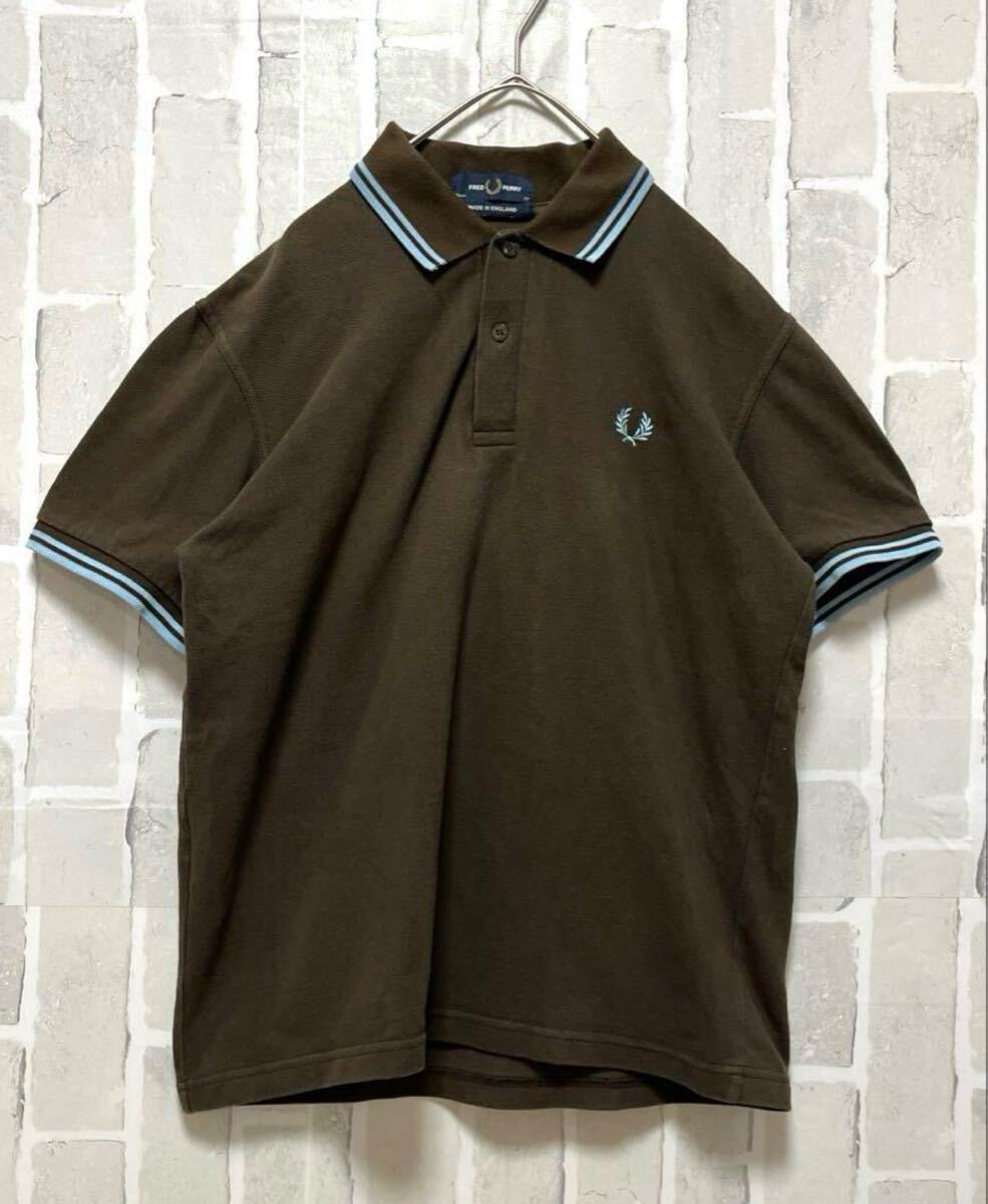 FRED PERRY フレッドペリー ワンポイントロゴ シンプルロゴ 刺繍 ポロシャツ サイズM 半袖 ブラウン イングランド製 英国製 鹿の子 リブライン ノームコア 送料無料の出品です。