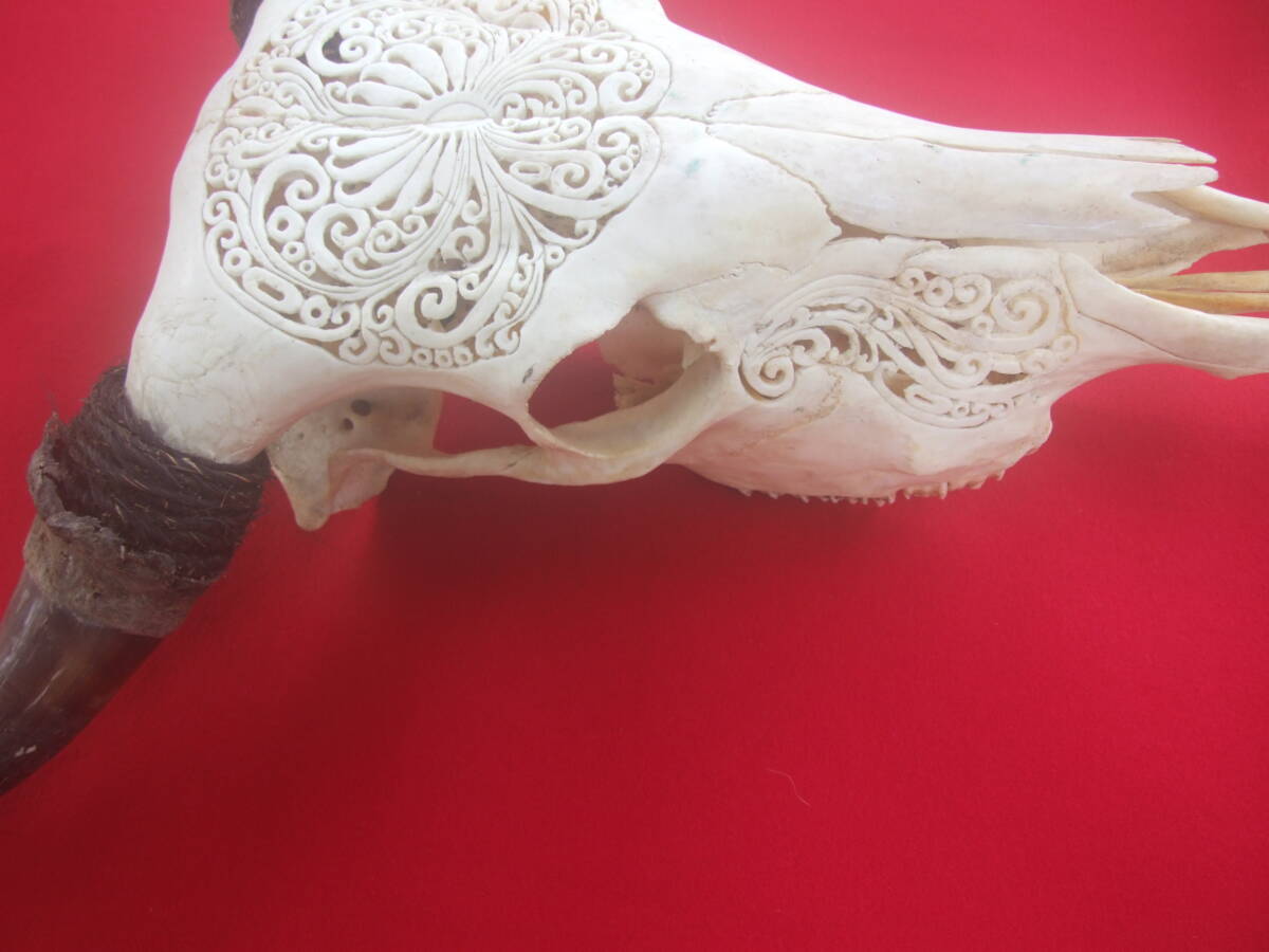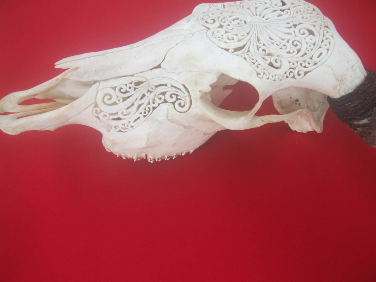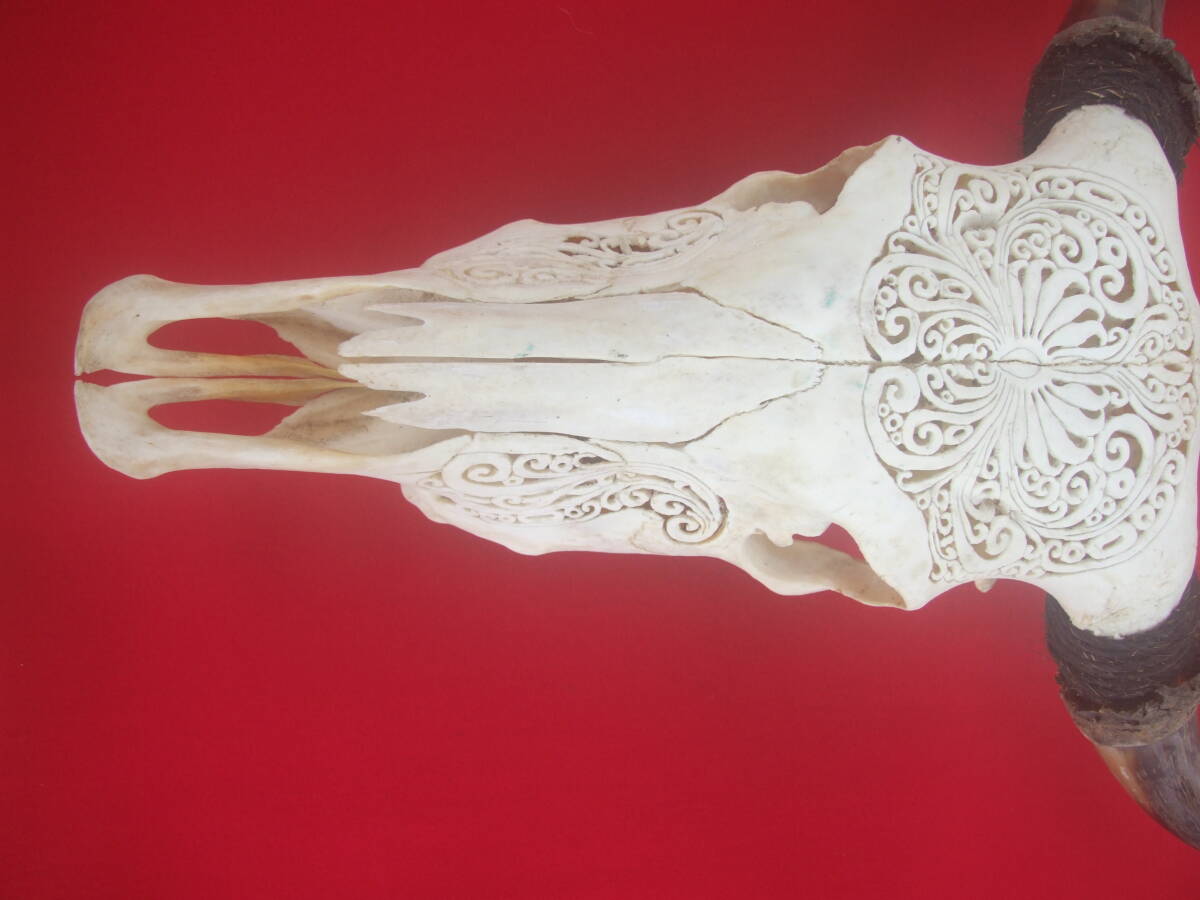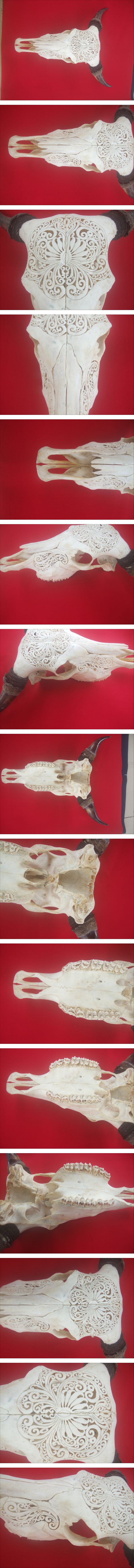 | バッファロー 頭蓋骨 本物 スカル 骨 頭部 角 標本 剥製 オブジェ 頭蓋骨にとても精密な彫刻がしてあrます。 品物は経年による汚れ等有りますが深い味わい有る品です 時代等分かる限りご覧になり判断ください。 サイズ 頭蓋骨 縦45㎝ 横24㎝ 角まで 縦54㎝ 横60㎝ 現状品渡しでお願いします 他にも色々出品していますのでご覧下さい。 | |||