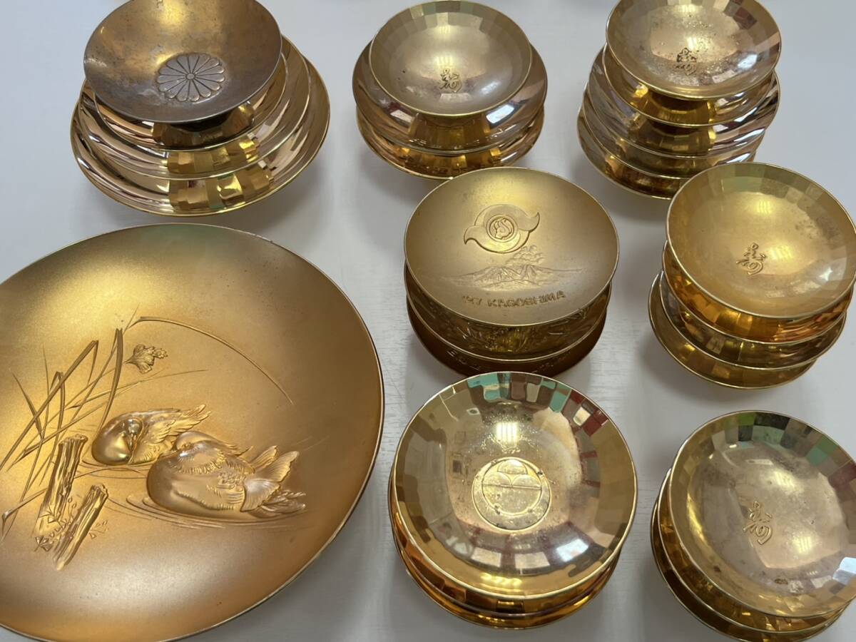 | ご覧いただきましてありがとうございます。 メッキ杯まとめ K24GP 金メッキ 大量 金杯 銀杯 メッキ金杯26点 その他詳細不明 汚れや破損など状態が悪い物もあります。 一度人の手に渡っていますので、 気になる方は購入お控えください。 |