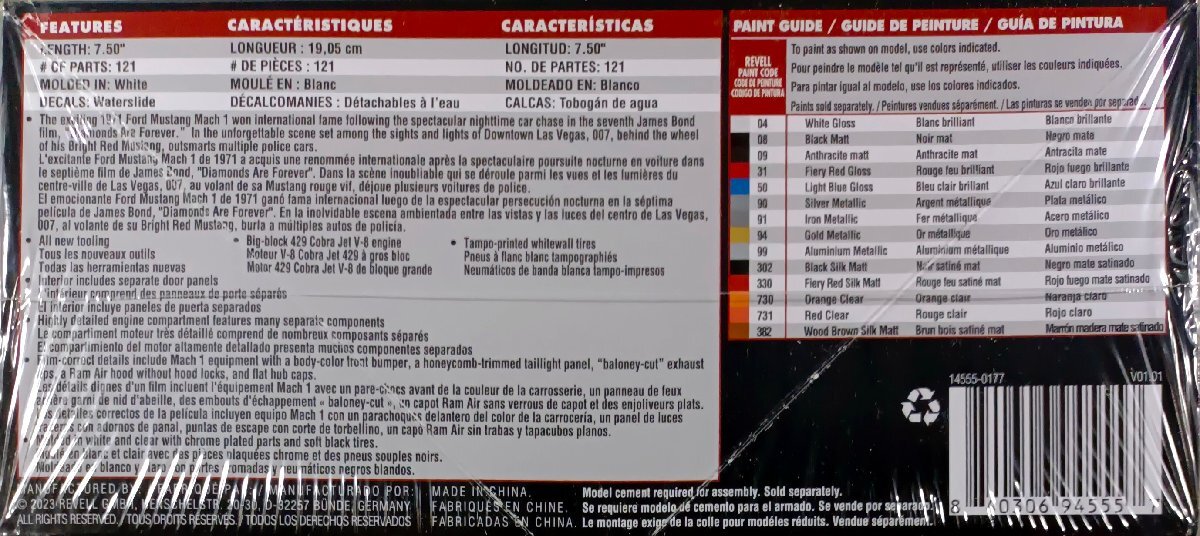 プラモデル1/25スケール組み立てと塗装が必要です接着剤と塗料は入っておりません説明書に日本語はありません画像は現品のものではありません#Revell#レベルモノグラム#フォード#マスタング#マッスルカー#アメ車#RMX4555