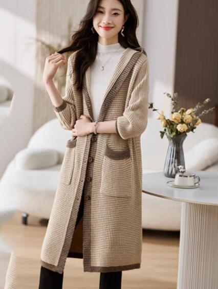 上品秋冬 カーディガン ロング丈 羽織 長袖 ゆったり ニットロングカーディガン ケーブル編み 厚手 前開き コート きれいめ ベージュ 3色