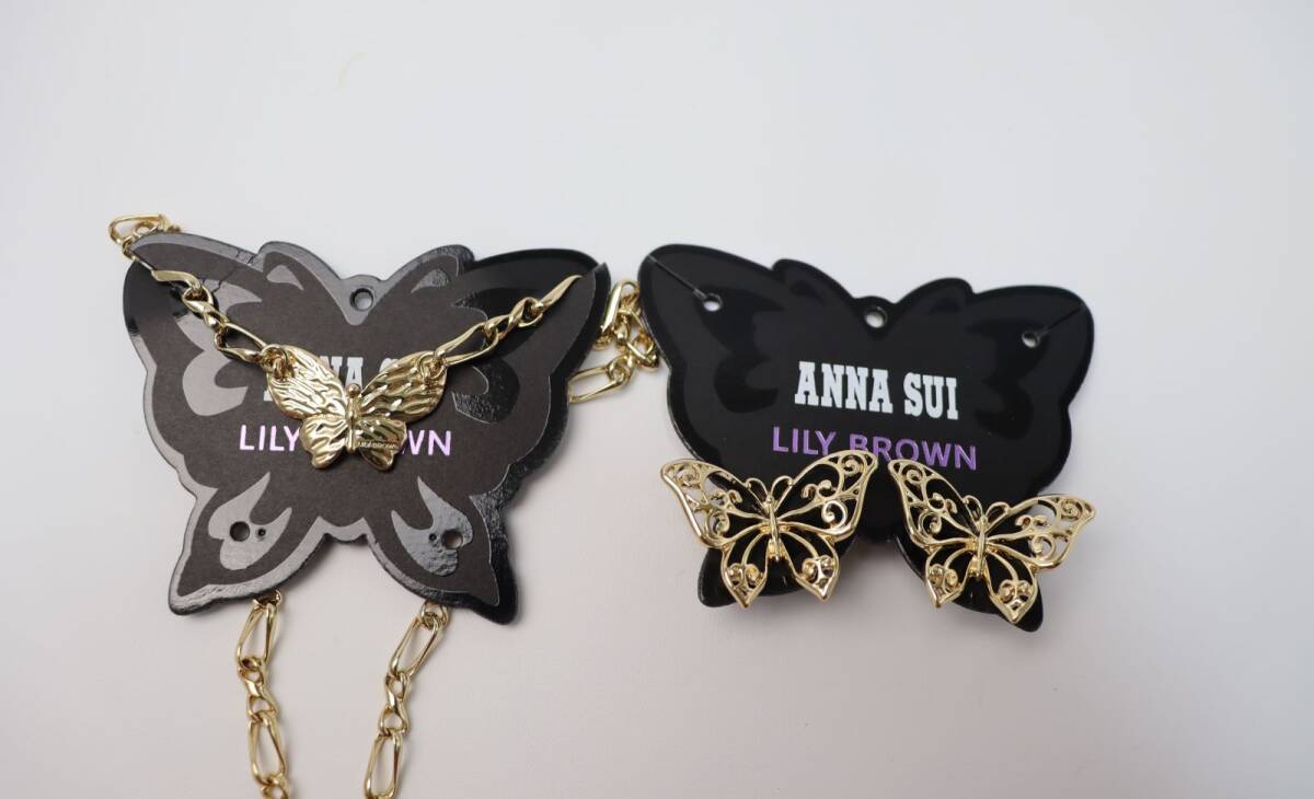 アナスイ× リリーブラウン コラボ 【LILY BROWN × ANNA SUI】バタフライネックレス バタフライピアス 蝶モチーフがかわいいネックレスとピアスの2点セットです。 (ばら売り不可です) ブランド商品説明・・・ 【ANNA SUIのアイコンであるバタフライモチーフがリュクスなネックレス】 【Design/Styling】 ブランドのアイコンであるバタフライモチーフをあしらったネックレス。やや重厚感のあるデザインが高級感を引き立て、首元を華やかに演出します。シンプルなトップスやドレススタイルに合わせるだけで、一気にコーディネートを格上げする存在感のあるアクセサリーです。 【繊細なラインで舞う蝶が美しいバタフライモチーフピアス】 【Design/Styling】 繊細なラインで描かれたバタフライモチーフが美しいワンポイントピアス。シルバーとゴールドのメタル素材を使用し、シンプルながらも高級感のある仕上がりです。軽やかで品のあるデザインが、耳元にさりげない華やかさをプラス。カジュアルなデイリースタイルにはもちろん、フォーマルなシーンでもワンランク上のスタイリングを演出します。 【ANNA SUI meets LILY BROWN】 世界的ウィメンズブランド ANNA SUI とのコラボレーションが実現。ANNA SUI の象徴的なバタフライモチーフやアーカイブのテキスタイルを散りばめ、ロマンティックで遊び心のある全18型のラインアップを展開。物づくりへの情熱や強いスピリット、大胆な色使いや独創的なデザインに親和性のある両ブランドのシナジーで魅せる刺激的で新鮮な世界観をお届けします。 ◆カラー:ゴールド ◆素材: ネックレス 真鍮・亜鉛合金 ピアス 亜鉛合金・真鍮・チタン・シリコン ◆サイズ: ネックレス 46.8cm ピアス チャーム縦2.3cm、チャーム横3.4cm ◆定価 ネックレス 6,930円 ピアス 5,280円 |