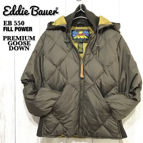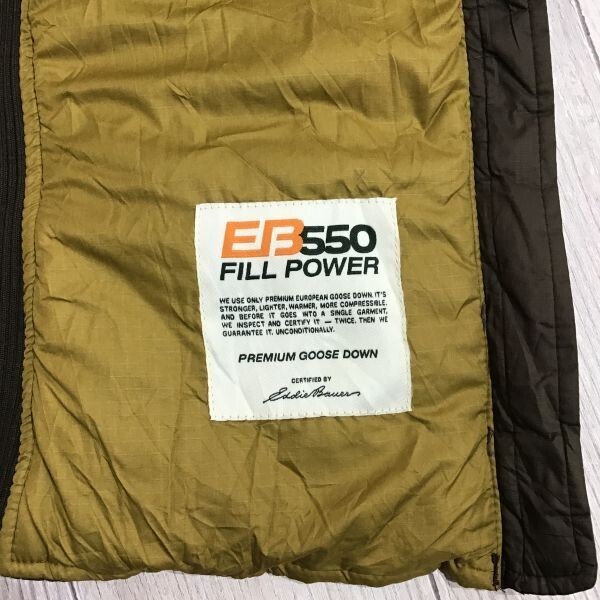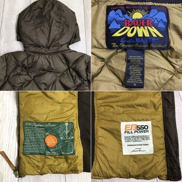 ◆稀少Sサイズ 正規品【Eddie Bauer エディバウアー】復刻 EB550フィルパワー サイドリブ 着脱フード付き 貴重 ダウンジャケット 茶 K-319