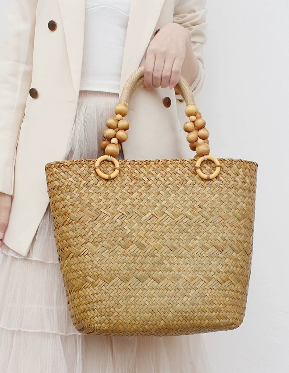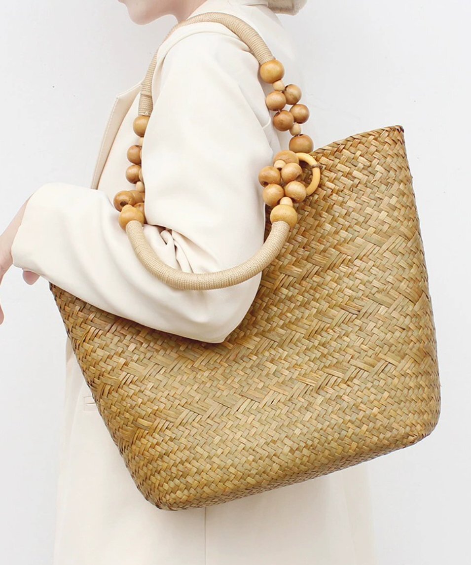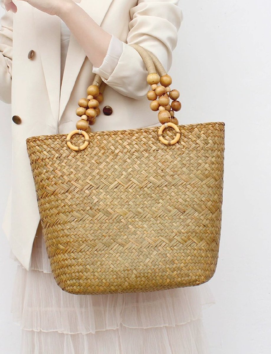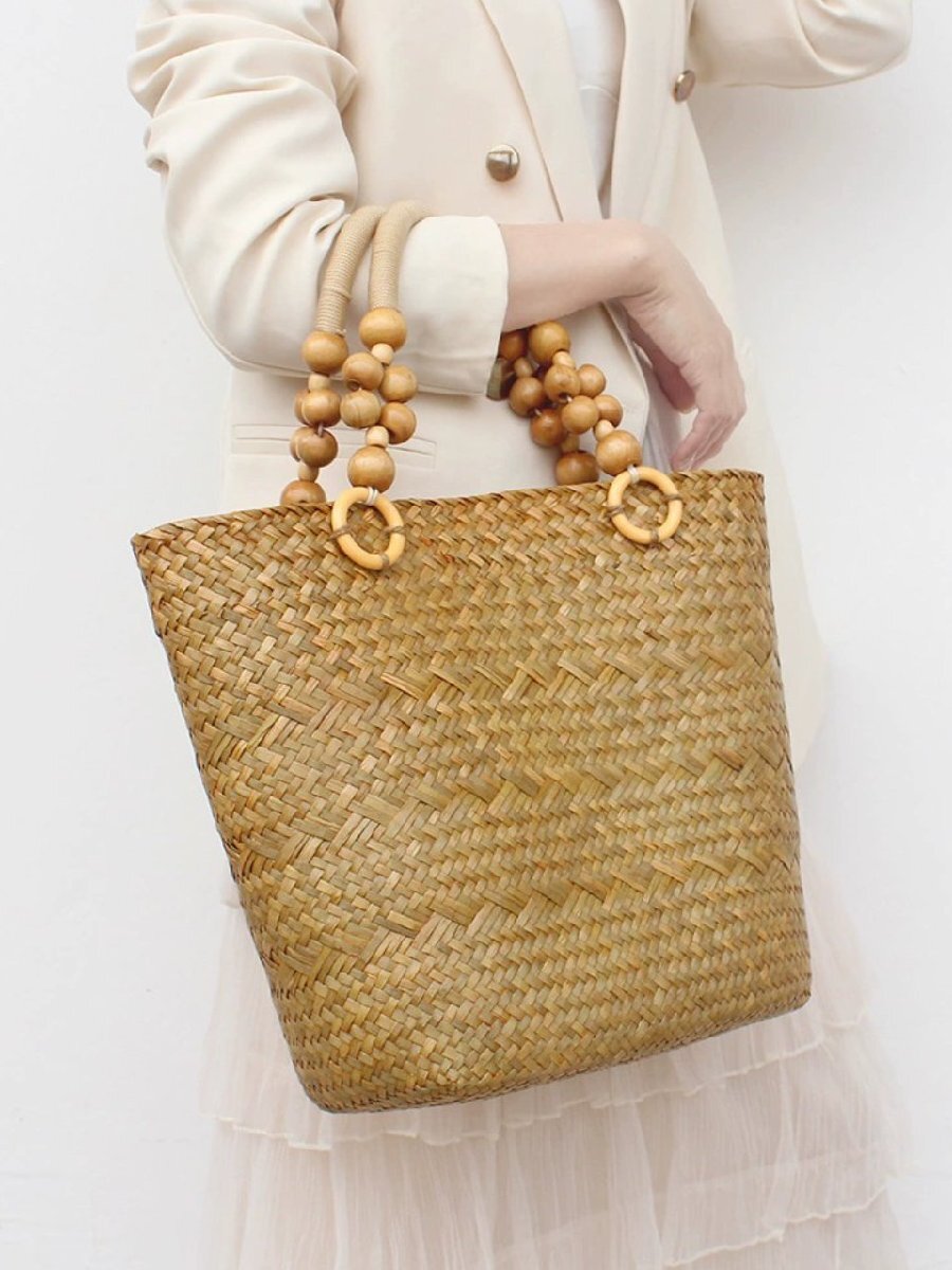 北欧海草編みバッグ大容量編みバッグ通勤用トートバッグバケーション用ショルダーハンドバッグ