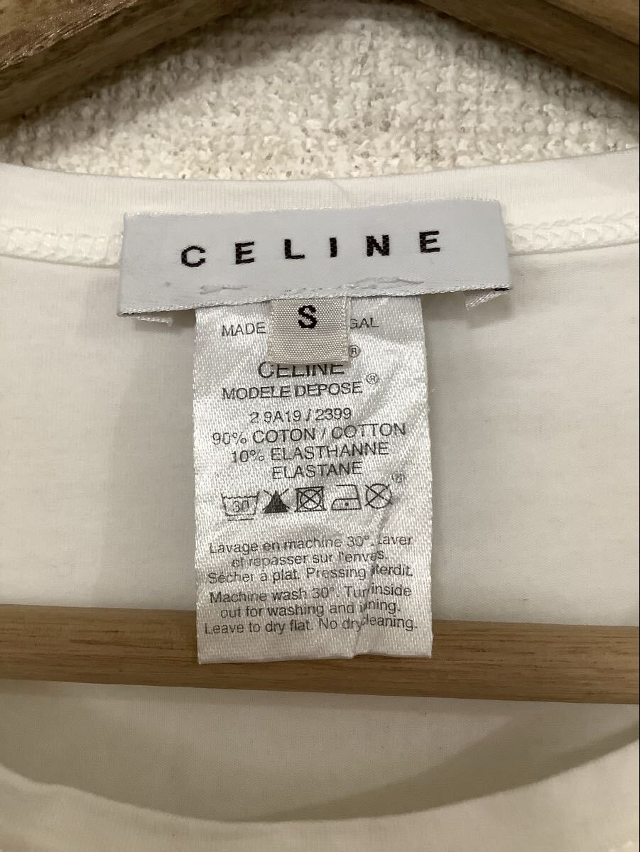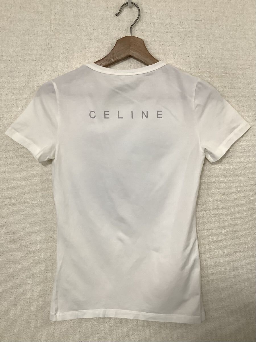CELINE セリーヌ プリント 半袖Tシャツ トップス ホワイト ブランド レディース ミセス 古着 S