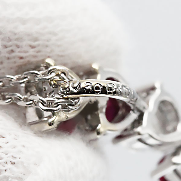 K18WG ハートシェイプ ルビー ダイヤモンド スライドチェーン ネックレス 46cm R1.31ct D0.39ct 女性 レディース 誕生日 プレゼント