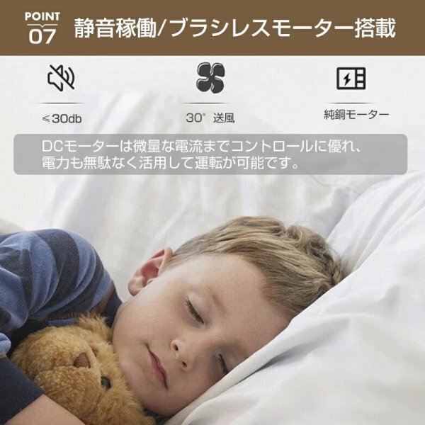 静音に優れたDCモーターで羽を回転。密閉空間の換気対策にも最適。