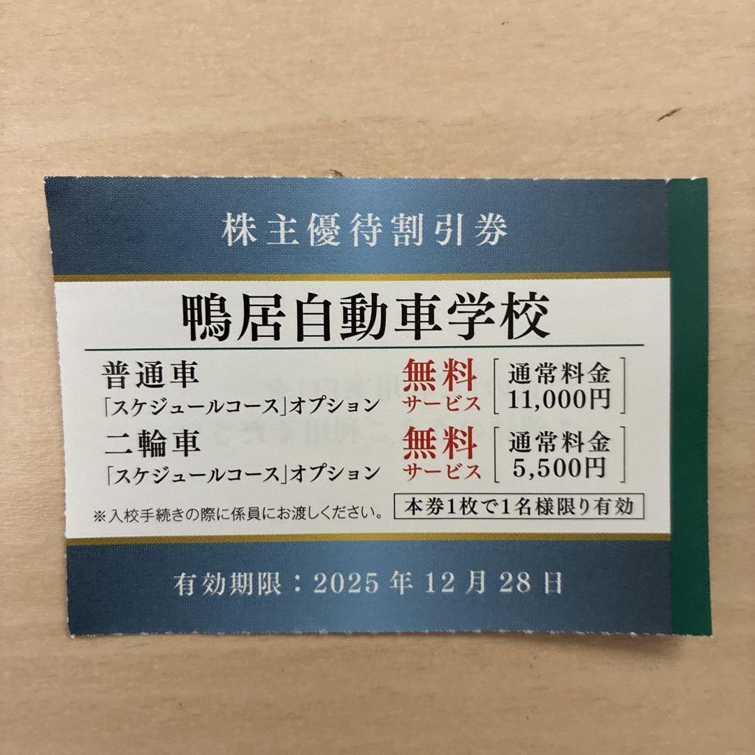 12/28迄★1枚 鴨居自動車学校 スケジュールコース オプション無料 割引券(普通車 二輪車)京急 京浜急行 株主優待割引券