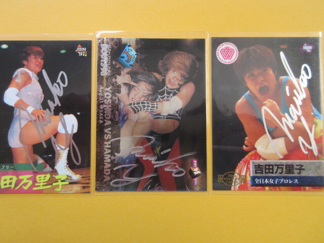吉田万里子☆直筆サイン入りプロレスカード【銀ペン】3枚セット