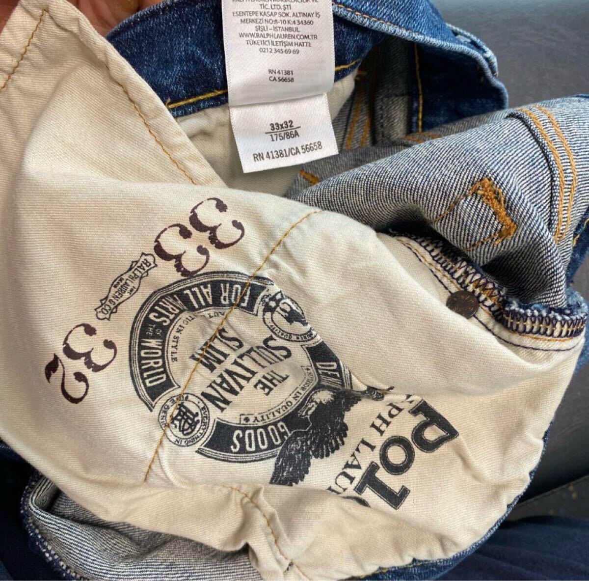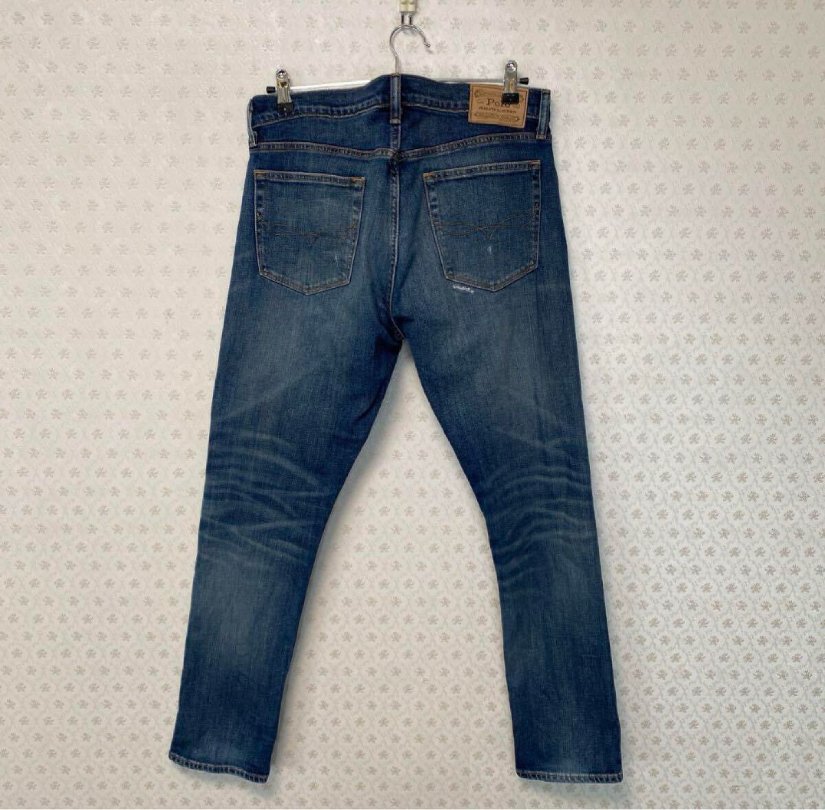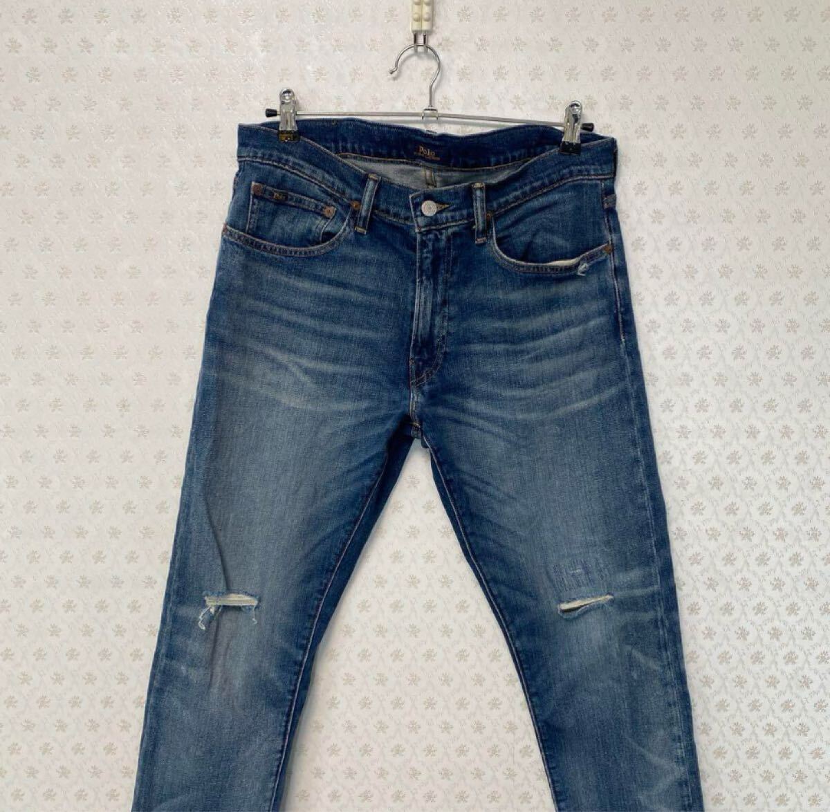 ポロラルフローレン ストレッチ デニム ジーンズ 33/32 ダメージ加工品  インディゴ