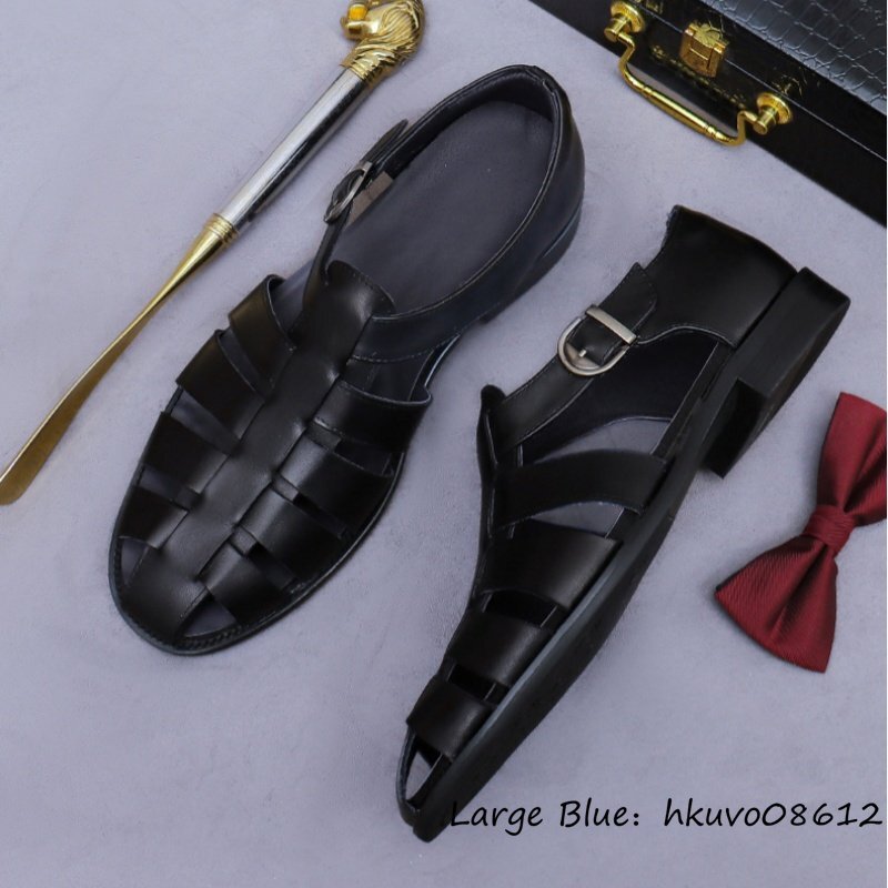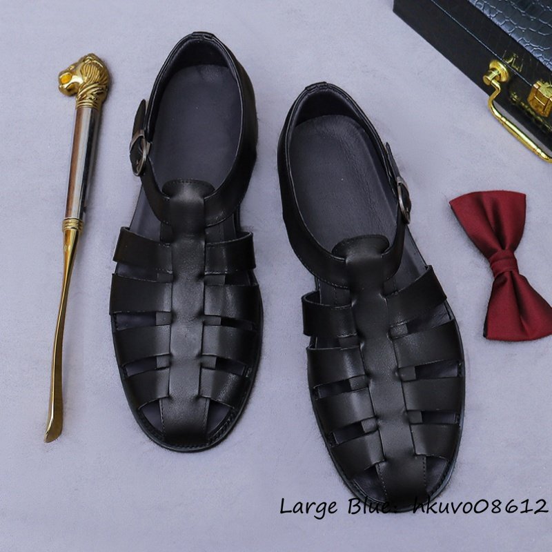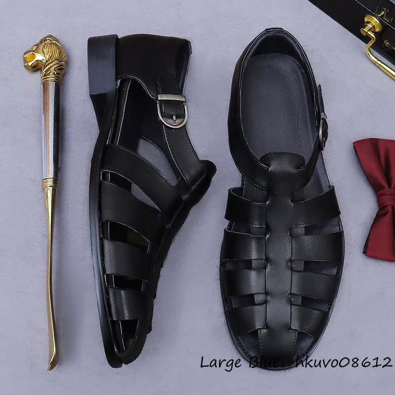 定価9万◆サンダル 編み込み 本革 職人手作り レザーシューズ スリッパ ビジネスシューズ 革靴 高級牛革 革靴 新品 通気性 ブラック 27.5cm