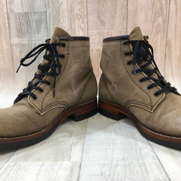 KZ6476★Al's Attire / BEAUTY&YOUTH : キャンバス レースアップブーツ★US7★濃いベージュ系 CAT'S PAW アルズアタイア