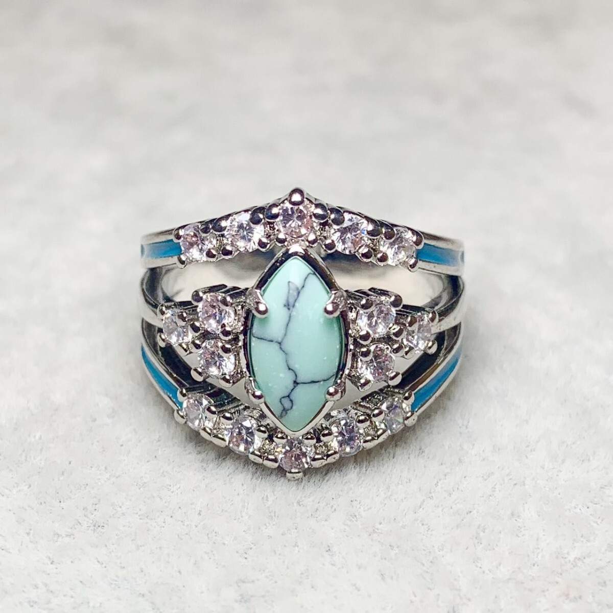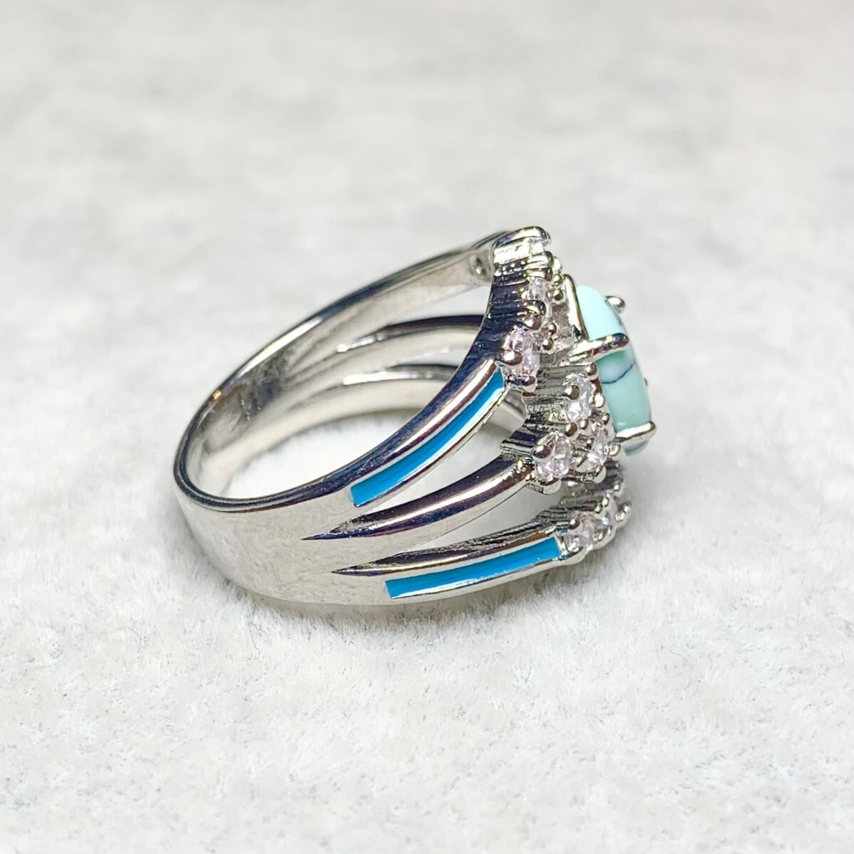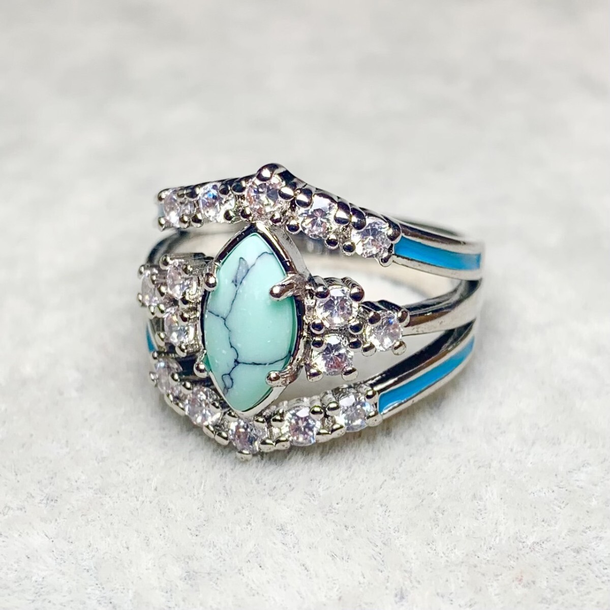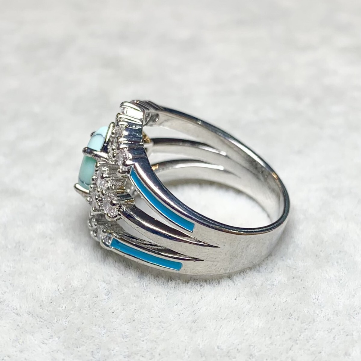 鮮やかなブルーのターコイズが、指先に爽やかな存在感を放つリング。