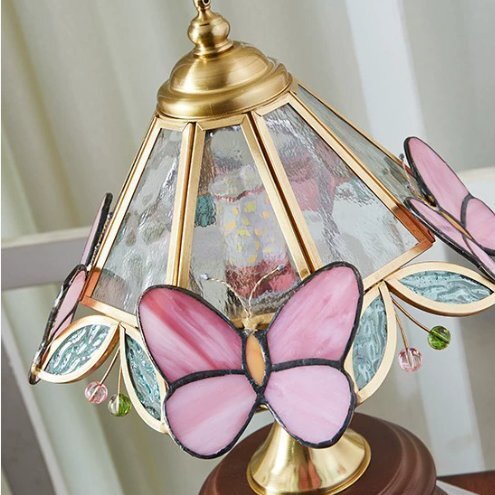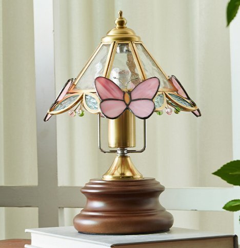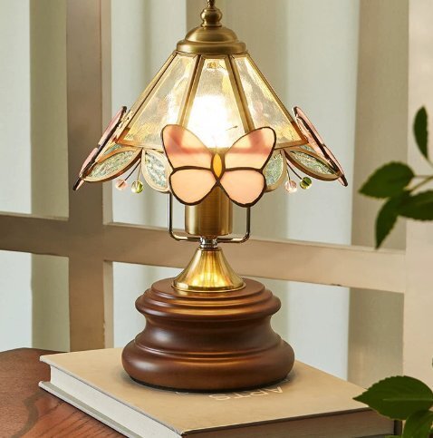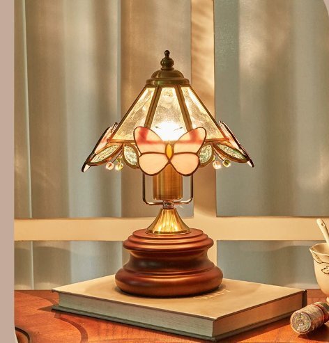 中古全スペクトル寝室の雰囲気のランプベッドサイドのランプアメリカのレトロなガラスのレトロな蝶の電気スタンドです