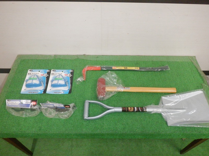 TKR7H-19/未使用/救助工具セット/ショベル・ハンマー・バール・マスク・ゴーグル/災害/避難/救出の出品です。