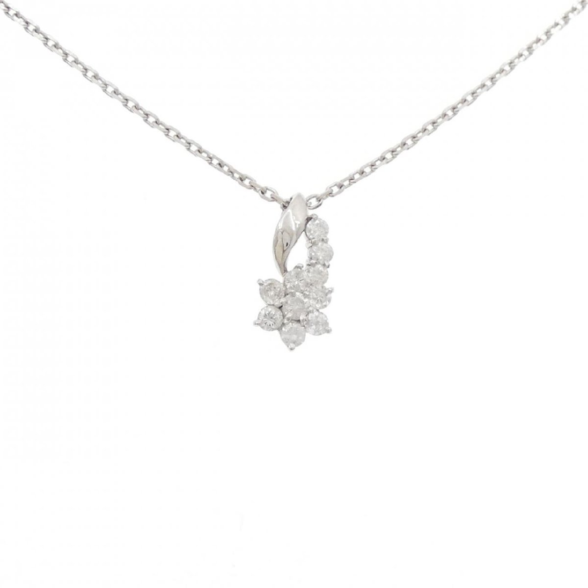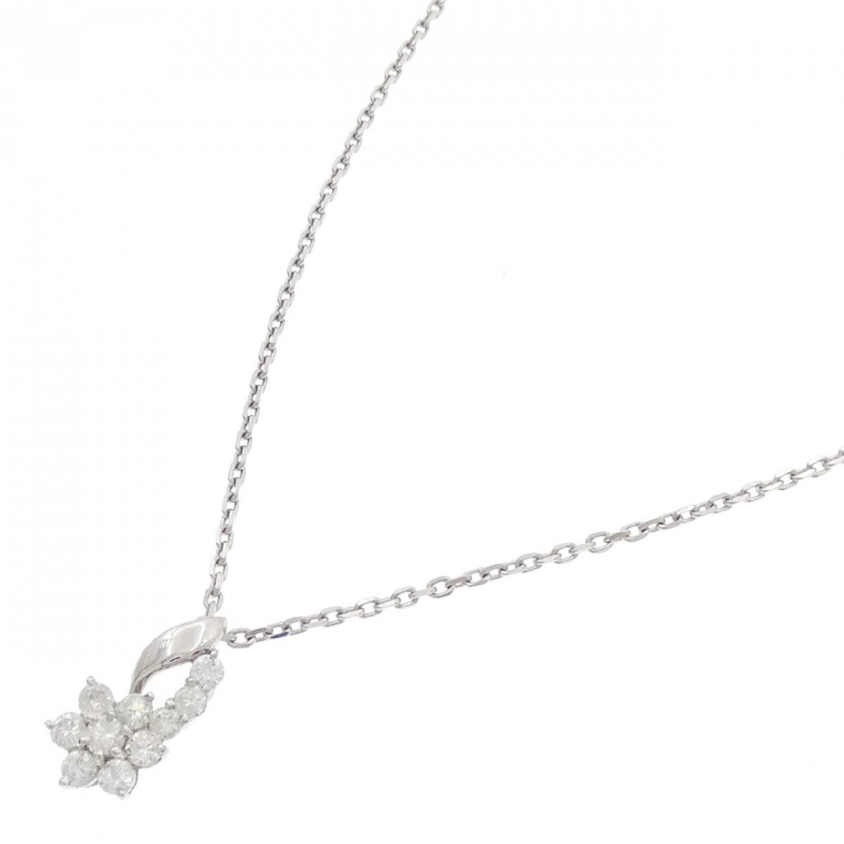 お花の形にあしらわれたダイヤモンドがキラリと輝きます。フェミニンな印象を与えてくれるネックレスです。