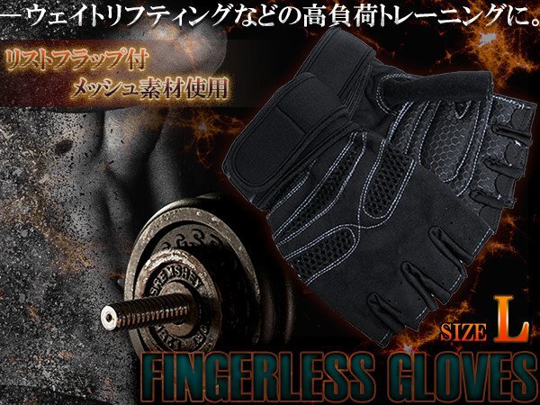 フィンガーレスグローブ ウエイトトレーニング 指なし トレーニンググローブ Lサイズ ブラック 黒 ジム ウェイトトレーニング 指だし 手袋