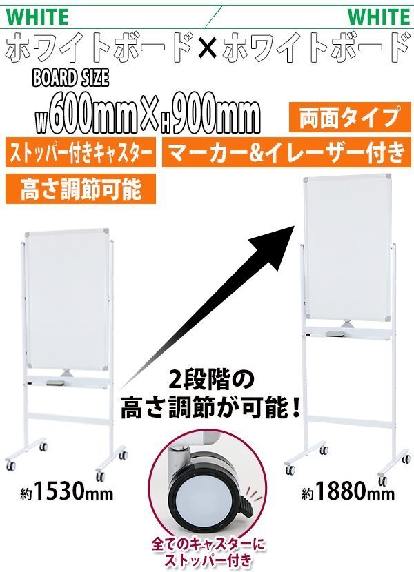 | 商品名 | 送料無料 ホワイトボード 脚付き 高さ2段階 高さ調節 600×900mm 両面 ハイグレードモデル フレームカラー ホワイト ストッパー付キャスター 回転式 W600×H900mm 60×90cm トレイ マーカー イレーザー付き スタンド 足付き アルミ枠 スチール 高さ調整 段階 whbdaf6090wwst |