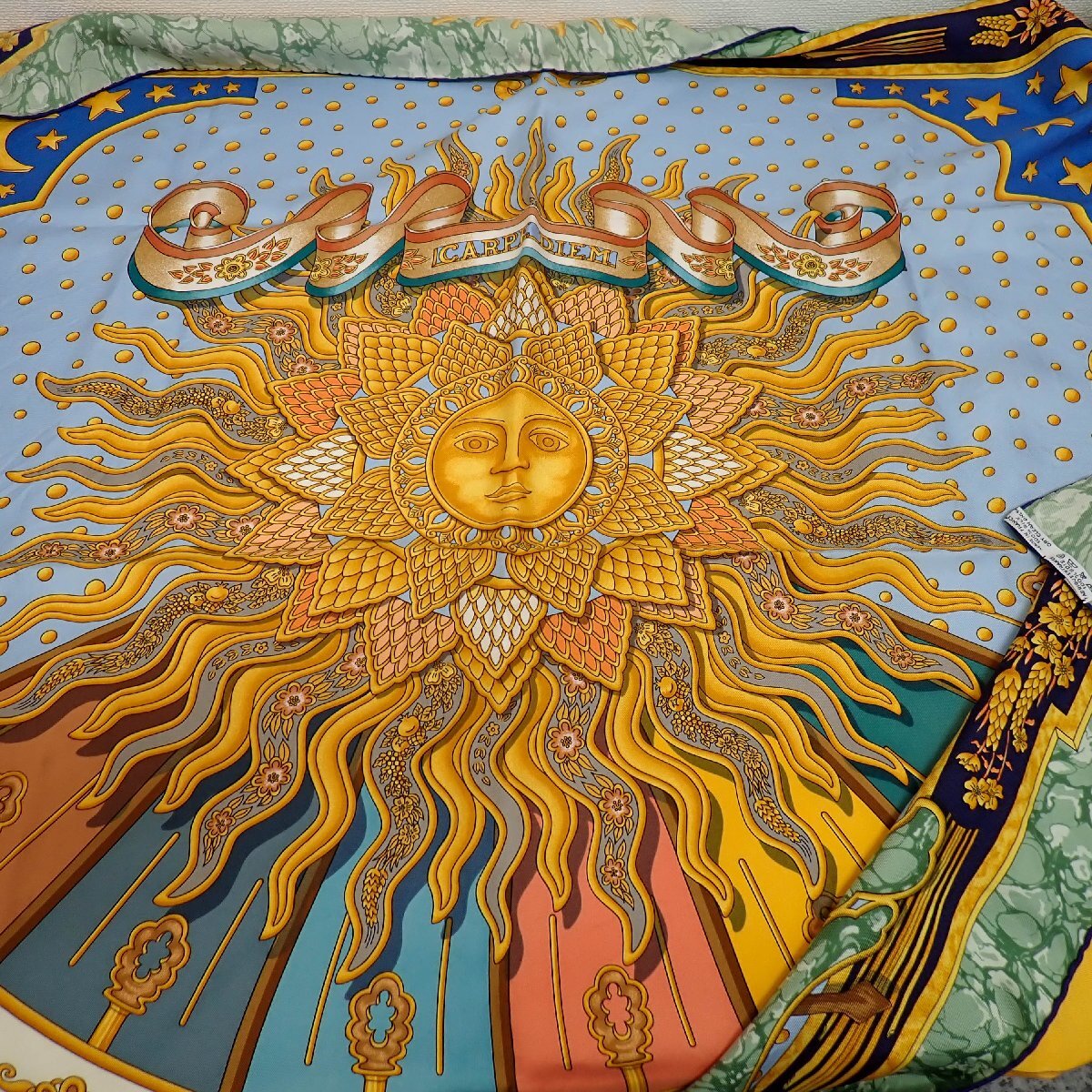 CARPE DIEM 今日一日を楽しむ :タグあり、ブルー系、多少シワ感がありますが、シミなどはありません。