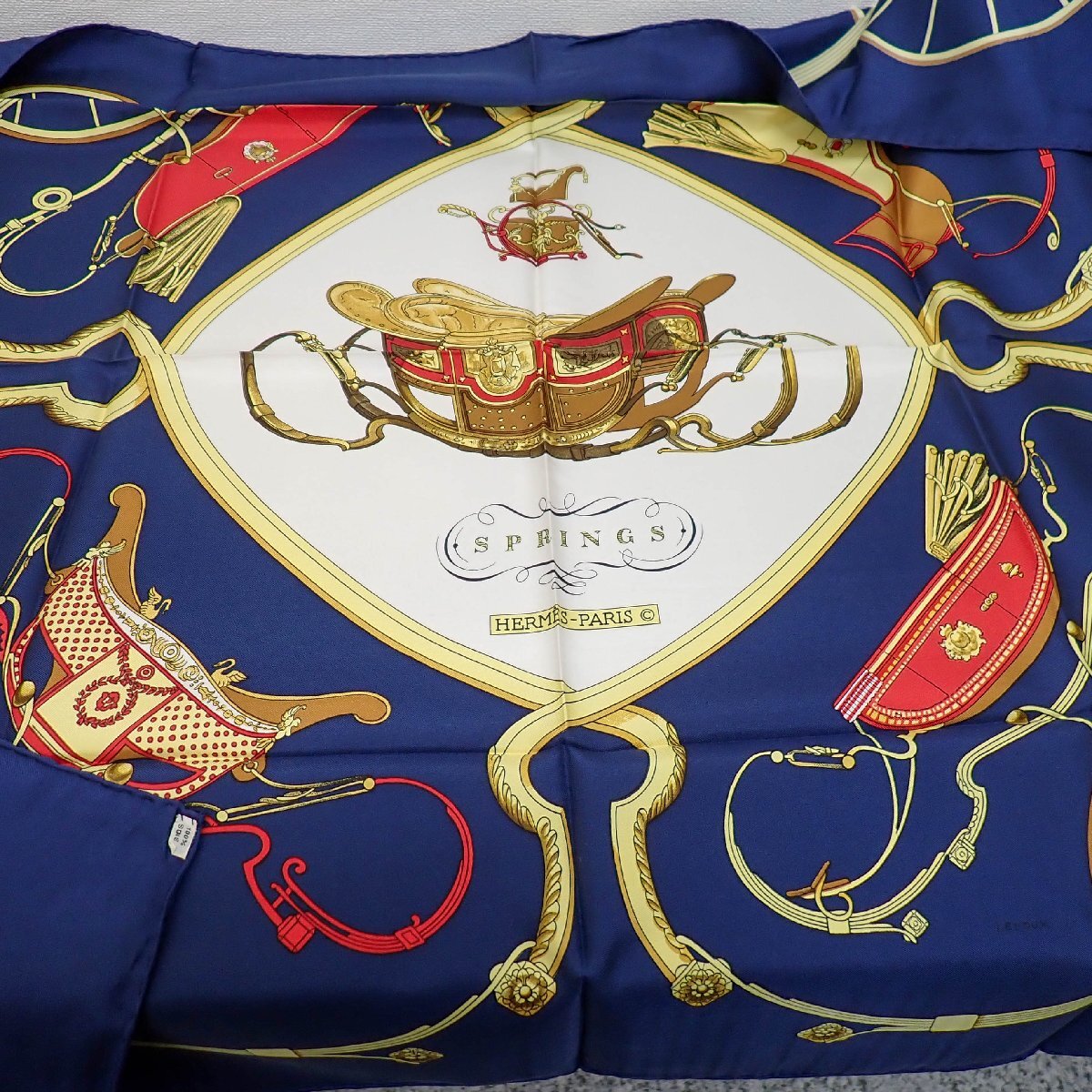 SPRINGS 馬車柄 :白い短いタグ、ブルー系、未使用に近い、わずかな薄汚れや保管臭あり。