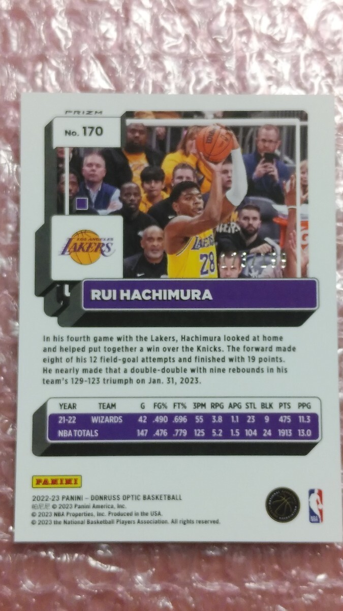 インスタントなどのオンライン販売系以外のパックから出る、最初のレイカーズジャージを着た八村選手のカードになります。