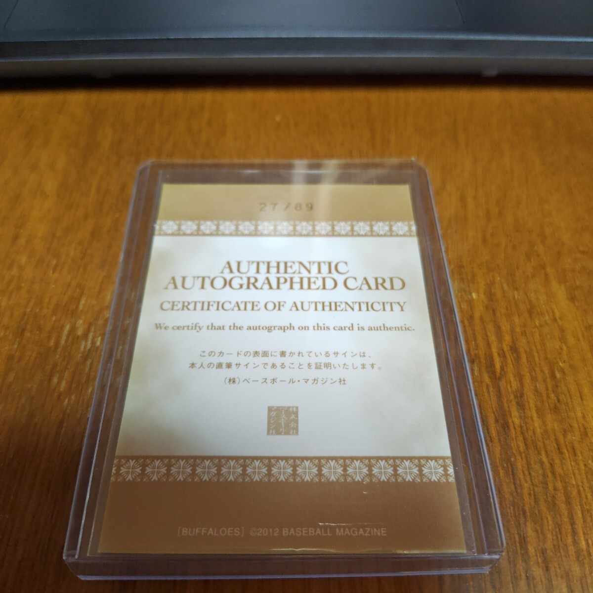 初期キズで表面右下に角折れ、裏面上部角にも若干角スレがあります。