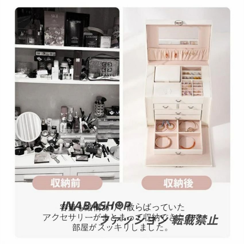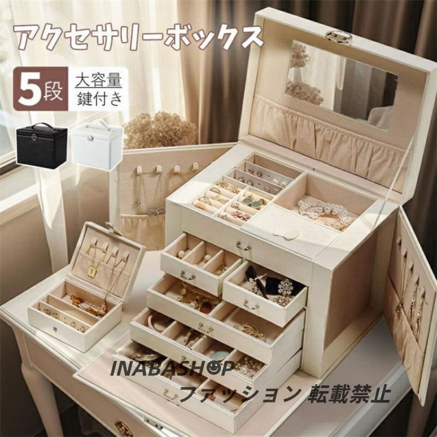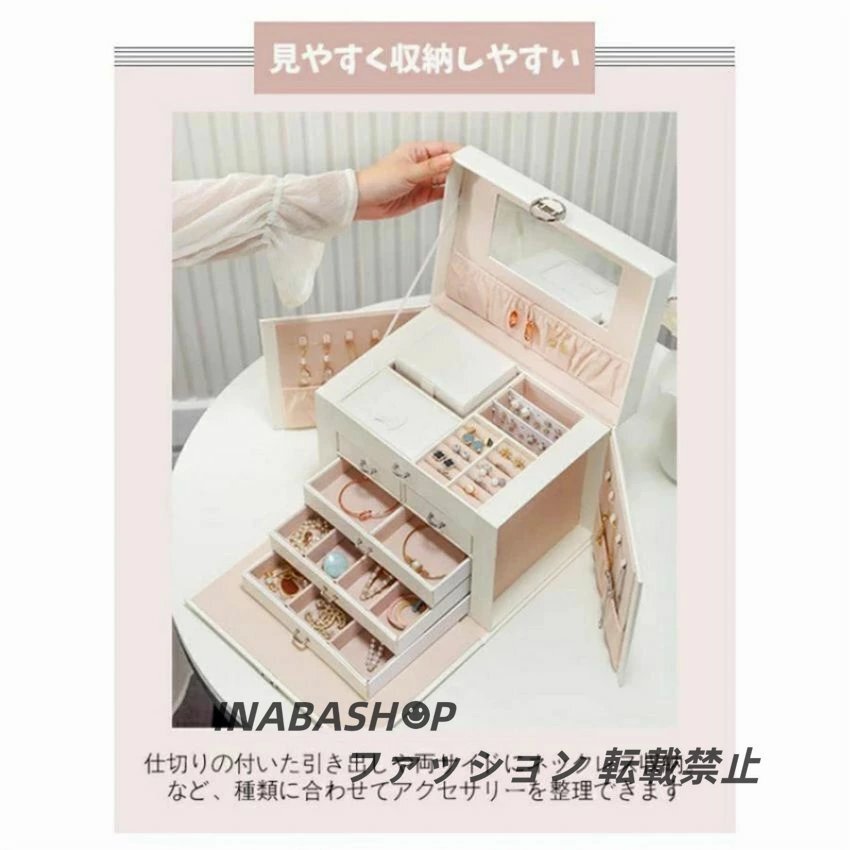 ジュエリーボックス アクセサリーボックス おしゃれ 収納ケース 大容量 宝石箱 鍵付きミラー付き 仕切り 引き出し 持ち運び 小物入れ 指輪