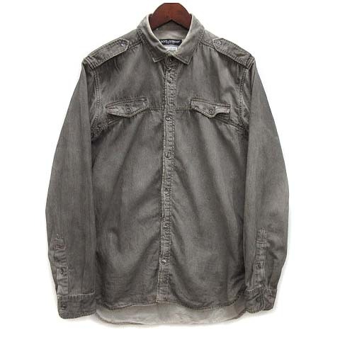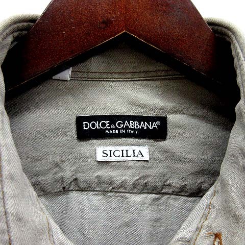 ドルチェ&ガッバーナ ドルガバ DOLCE&GABBANA SICILIA ミリタリー デニム シャツ 長袖 USED加工 グレー 39 G5AJ2D G8J04 メンズ