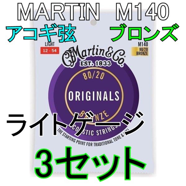 [弦×3セット] MARTIN M140×3セット 送料無料!ポストに投函・アコギ弦 マーティン ACOUSTIC/Light [12-54]
