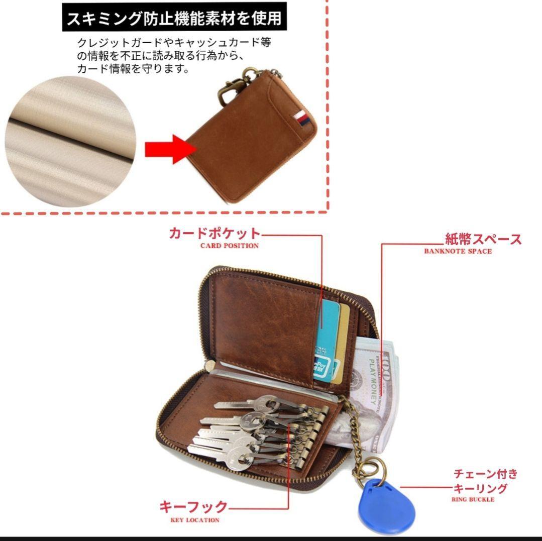 キーケース レザー 本革 RFIDスキミング防止 スマートキー対応 多機能 牛革 カラビナ付き コンパクト カード収納 シンプルデザイン プレゼント 就職祝い ヴィンテージレザー ラウンドファスナー カードケース