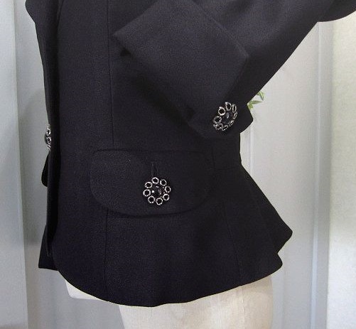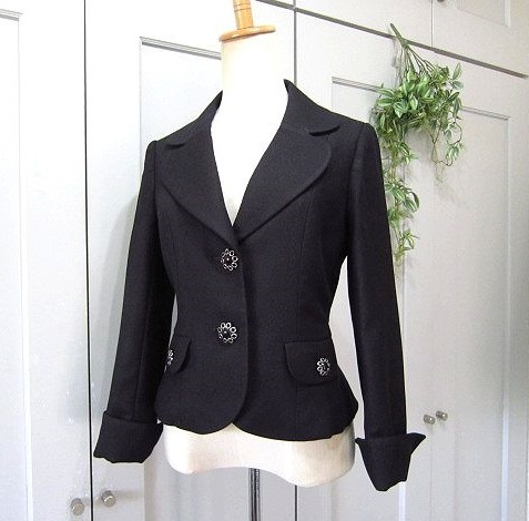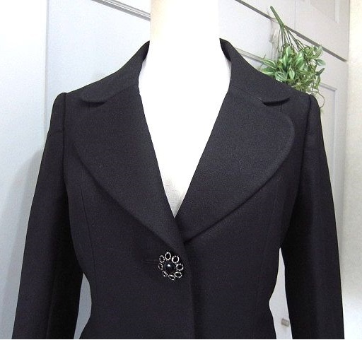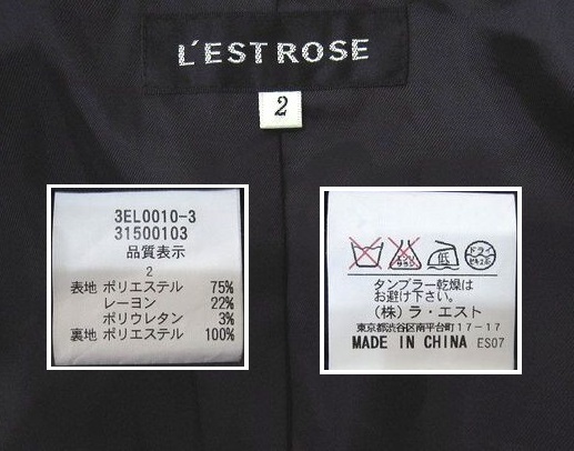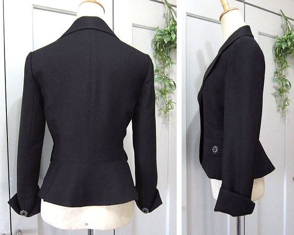 ブランド ,LESTROSE レストローズ ㈱ラ・エスト 特徴 しわになりにくい上質素材 フロントとポケット部分と両袖部分にアンティーク調ボタン 裾部分はペプラム仕立 フロントアンティーク調ボタン2ヶ仕様。両前ポケット付 両袖裾スリット入(約7㎝)