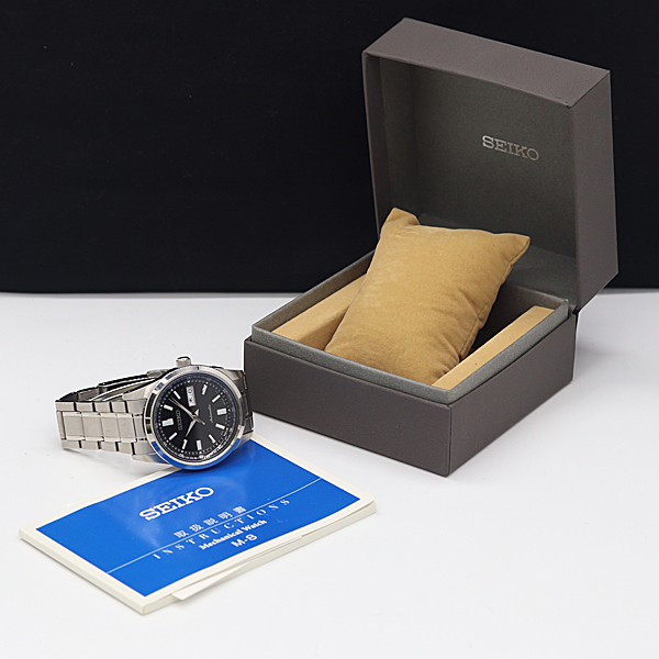 1円 保/箱付 稼働 美品 セイコー 4R36-0520 ブラック文字盤 AT/自動巻 メンズ腕時計 5528100 8MGY KTU