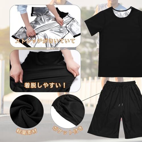 このサウナスーツは、運動中の発汗を促進し、短時間で効率的にカロリーを消費します。