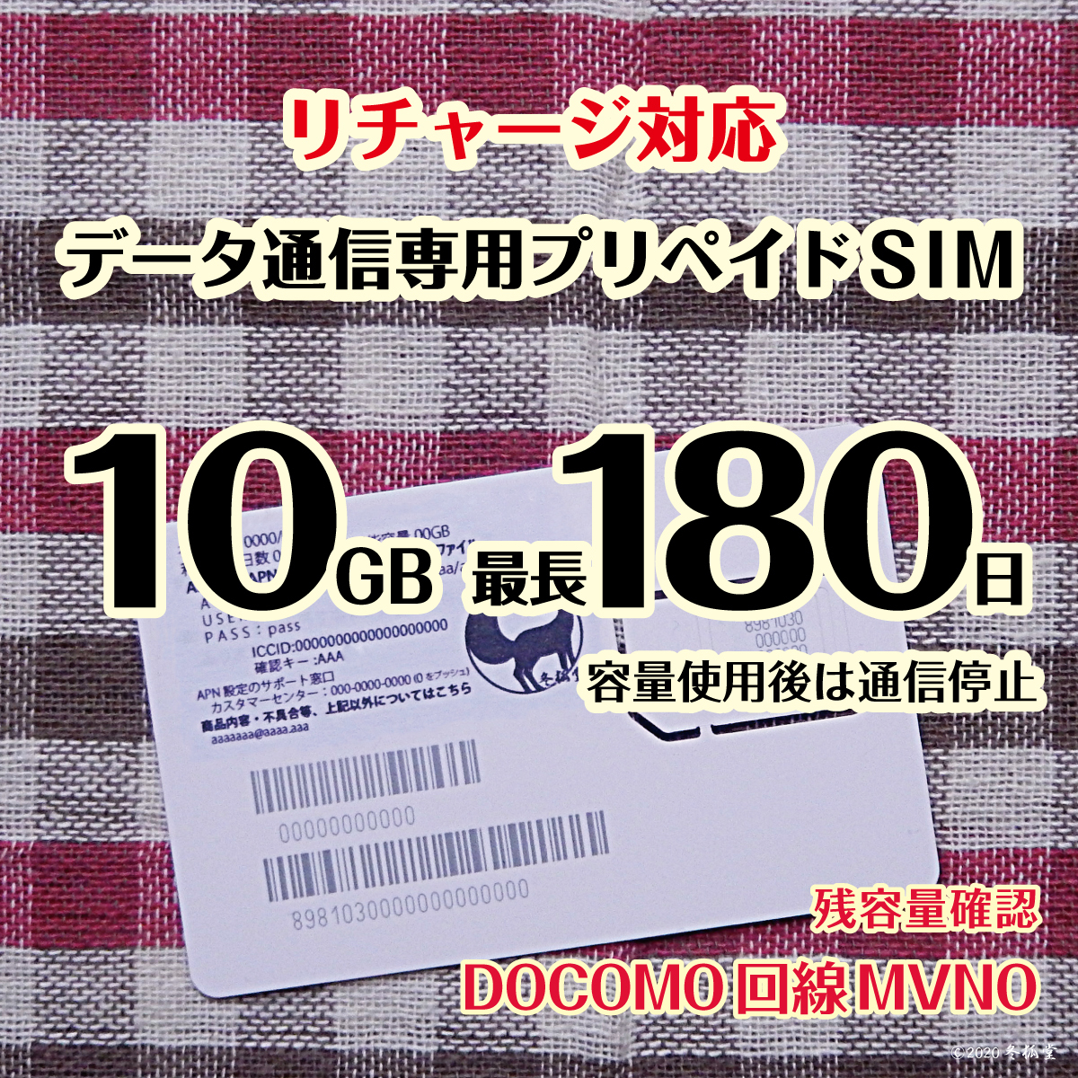 [10GB 最長180日] [リチャージ対応] (容量使用後は通信停止) DOCOMO MVMO回線データ通信専用プリペイドSIM #冬狐堂