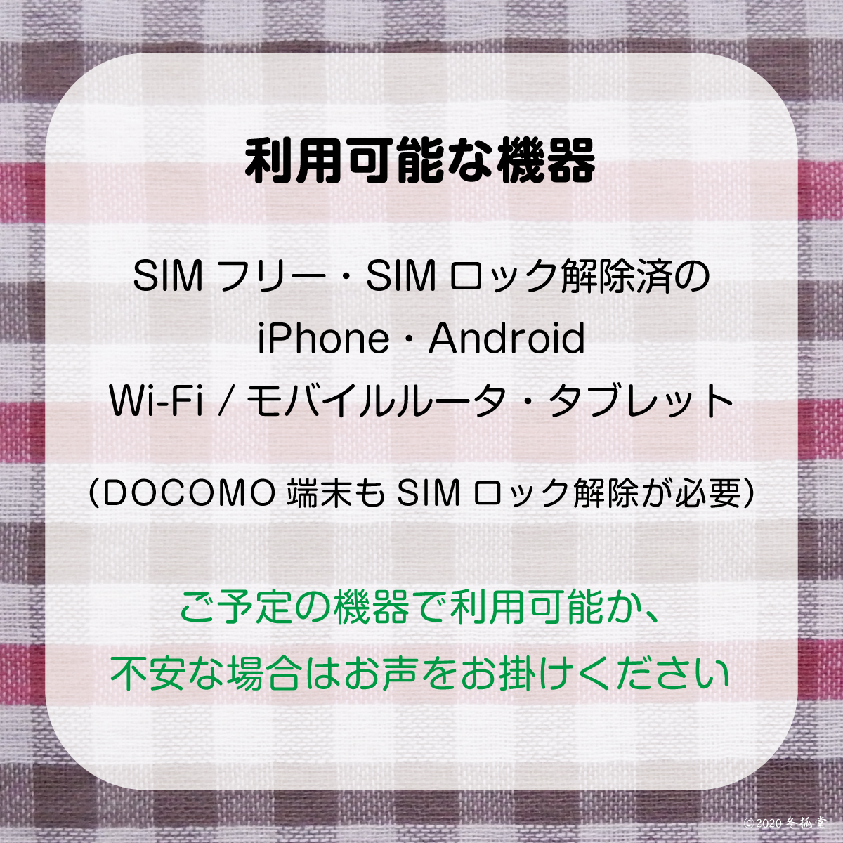 SIMフリーの、スマホ・iPhone・ルータ・タブレット等でご利用いただけます。