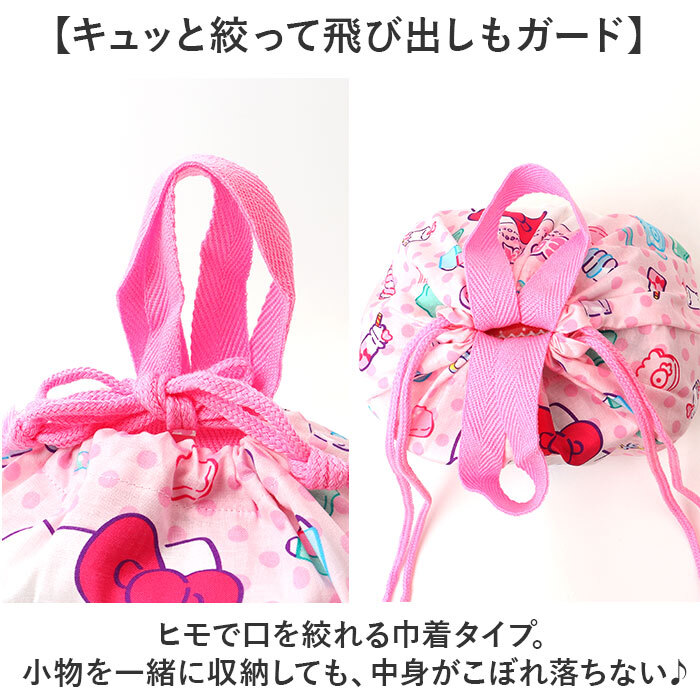 ・ヒモで口を絞れる巾着タイプ。小物を一緒に収納しても、中身がこぼれ落ちない♪