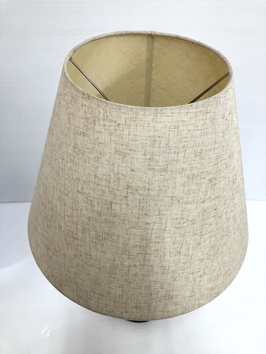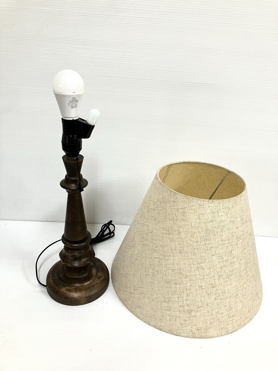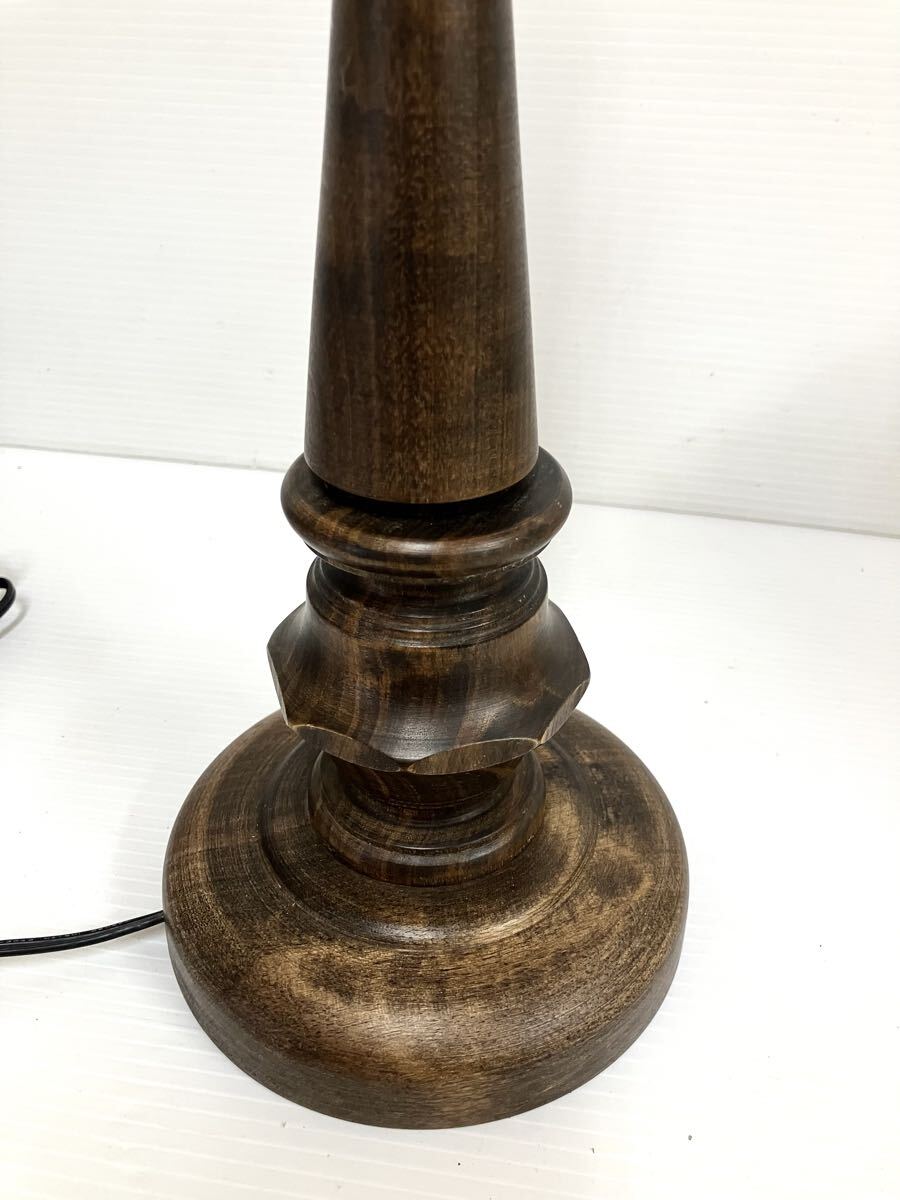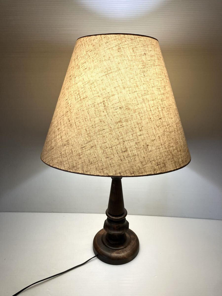 土台は木製で傘は淡いブラウンのシックなカラーなので寝室等に置いても良いかと思います。