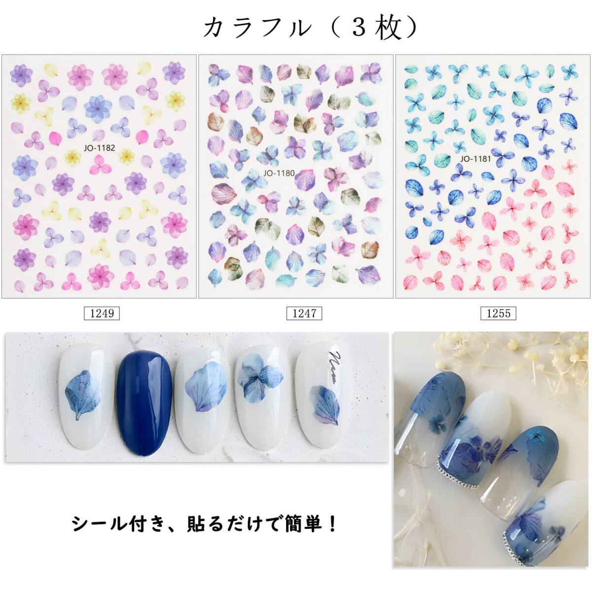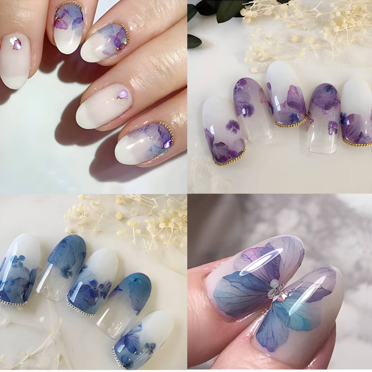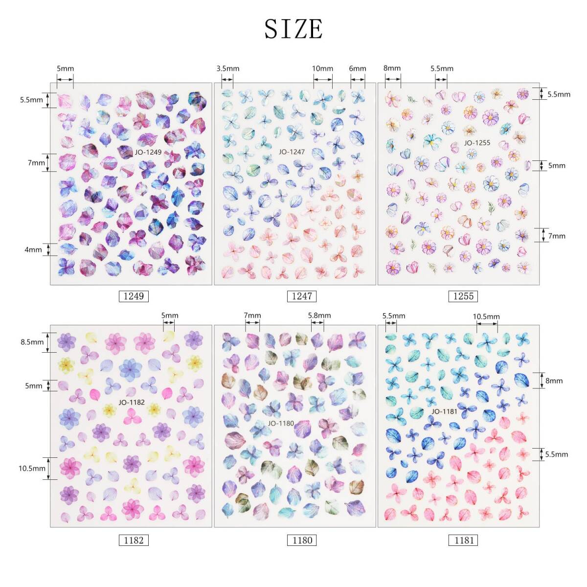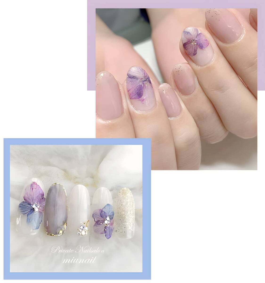 【マルチサイズ】さまざまなサイズがある紫陽花シールは、爪のサイズやネイルスタイルに合わせることができます