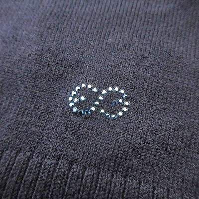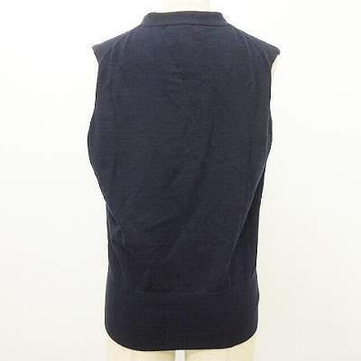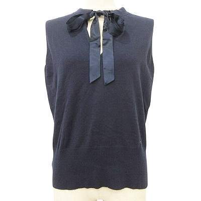 エスカーダ ESCADA SPORTS ボウタイ付き ノースリーブ ニット カットソー Vネック L 紺 ネイビー レディース