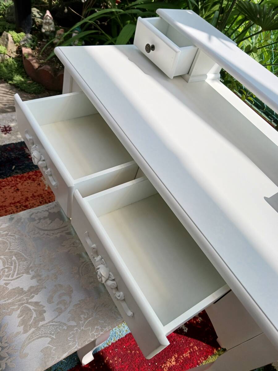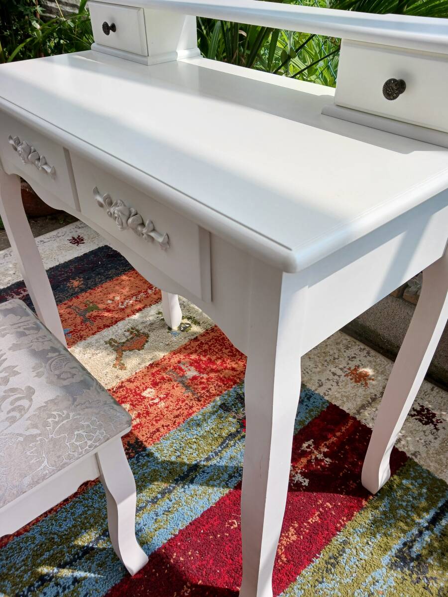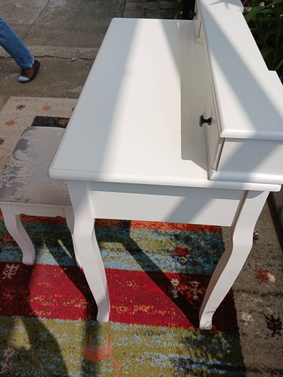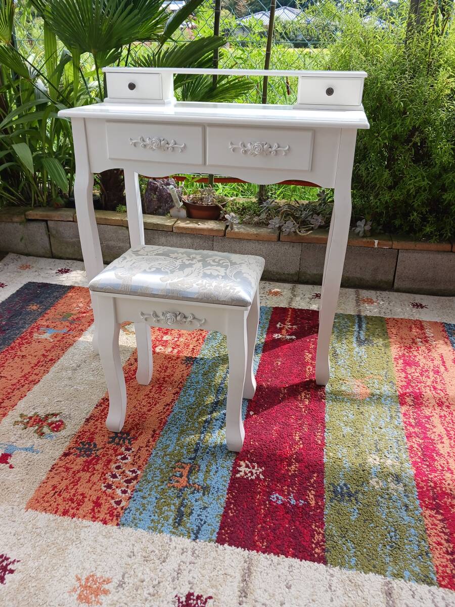 M-150 ロココ ホワイトシャビー 猫脚ドレッサー&スツール付 化粧台 幅80cm 奥行40cm 高さ87cm スツール 幅37cm 奥行28cm 高さ45cm