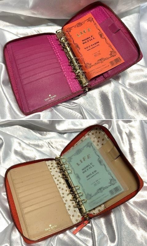 ◇ビタミンカラー◇kate spade◇ケイトスペード【オレンジカラー&マゼンタカラー バイカラーシステム 6穴手帳ケース 2冊セット】Q08348