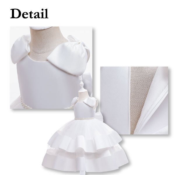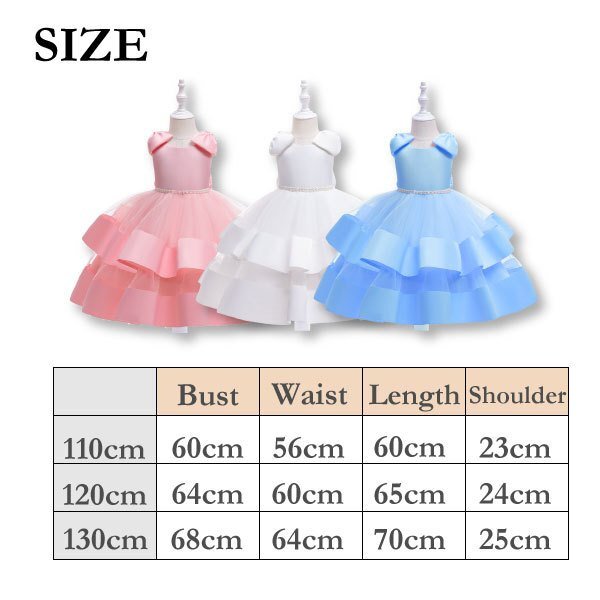 | ☆トリプルリボンドレス キッズ用 ※ご購入されましたらオーダーフォームにご希望のカラーとサイズをご入力ください。 【カラー】 リボンホワイト、リボンローズ、リボンブルー 【サイズ】 110cm、120cm、130cm ※リボンブルー130cmは在庫切れになります。 -*-*-*-*-*-*-*- 【商品名】 トリプルリボンドレス 【素材】 ポリエステル 65% ビスコース 35% 【カラー】 ◆リボンホワイト ◆リボンローズ ◆リボンブルー 【サイズ】 ■110cm ■120cm ■130cm 【おすすめポイント♪】 ■ピアノの発表会などの、結婚式などのフォーマルなシーンで注目を浴びるかわいいドレスです。 ■肩と腰に大きなリボンが付いていてチャーミング♪ ■スカートの透け感も可愛く、フォーマル感がありながらも子供らしい魅力を引き出すデザインです。 ■別売りのパニエを下に履くとよりボリュームがでて可愛さアップ♪ | ||||