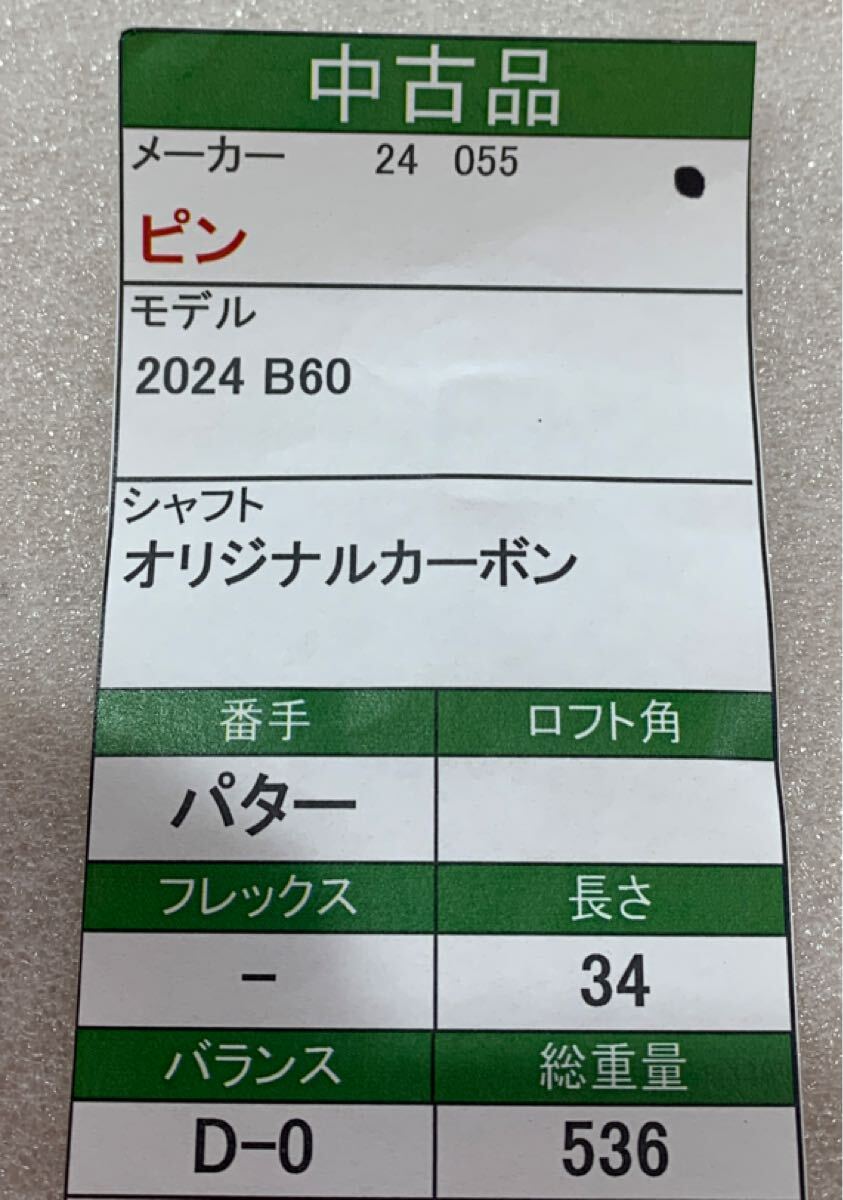 【即決価格】【パター】ピン/2024 B60/オリジナルカーボン/34インチ/カバー有り