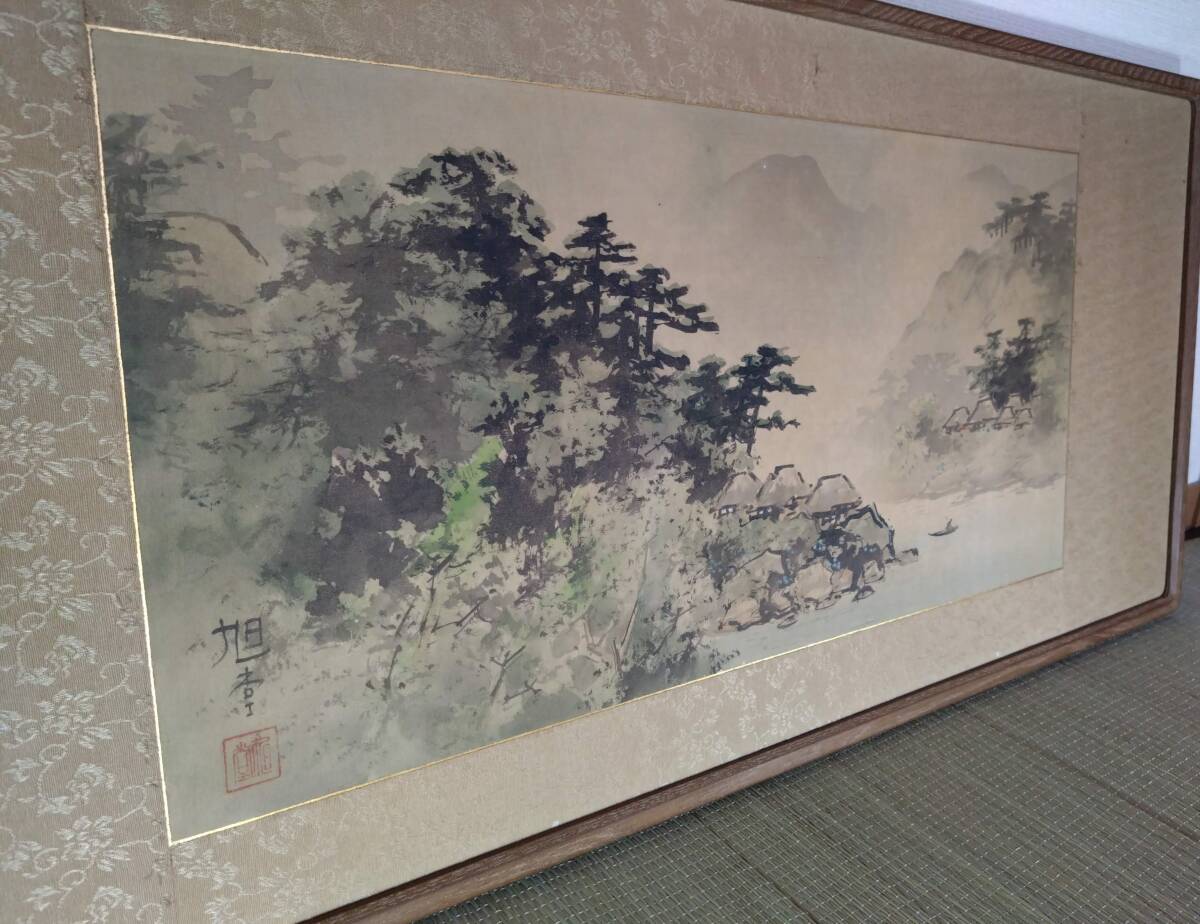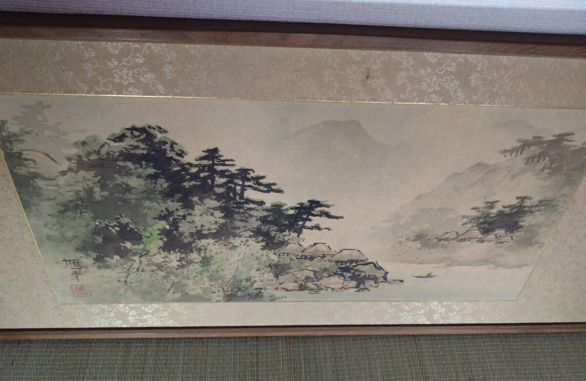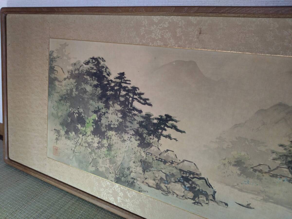 墨絵 旭堂 山村晴日 山水画 日本画 額93×42cm