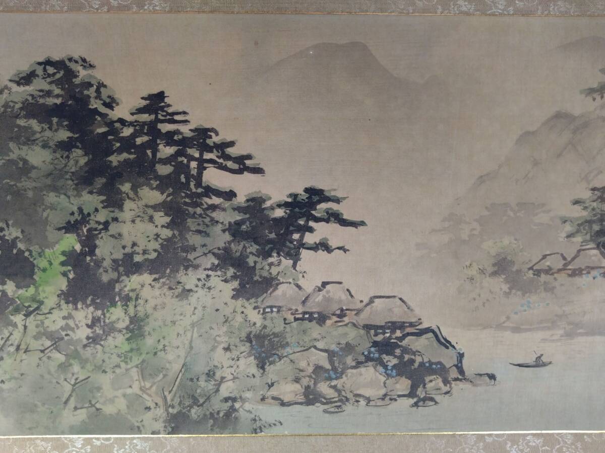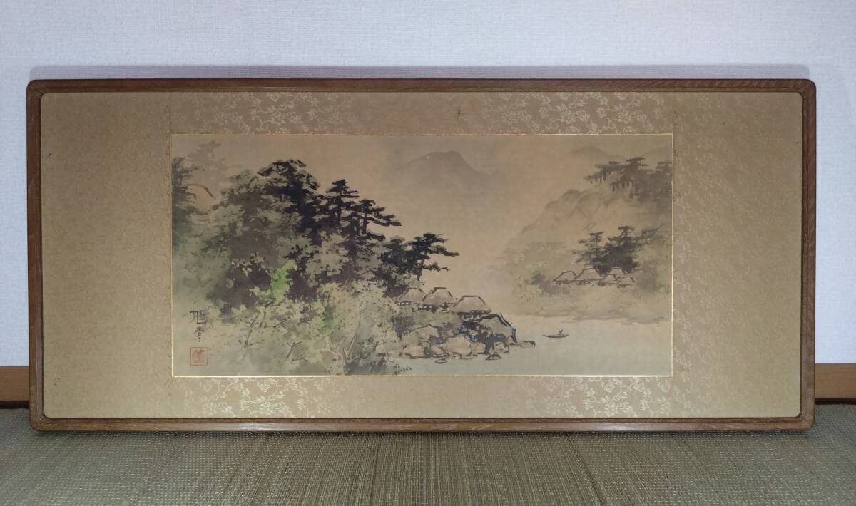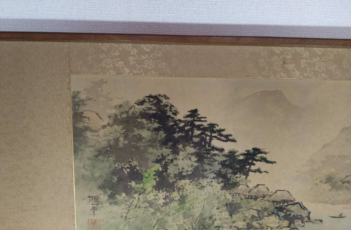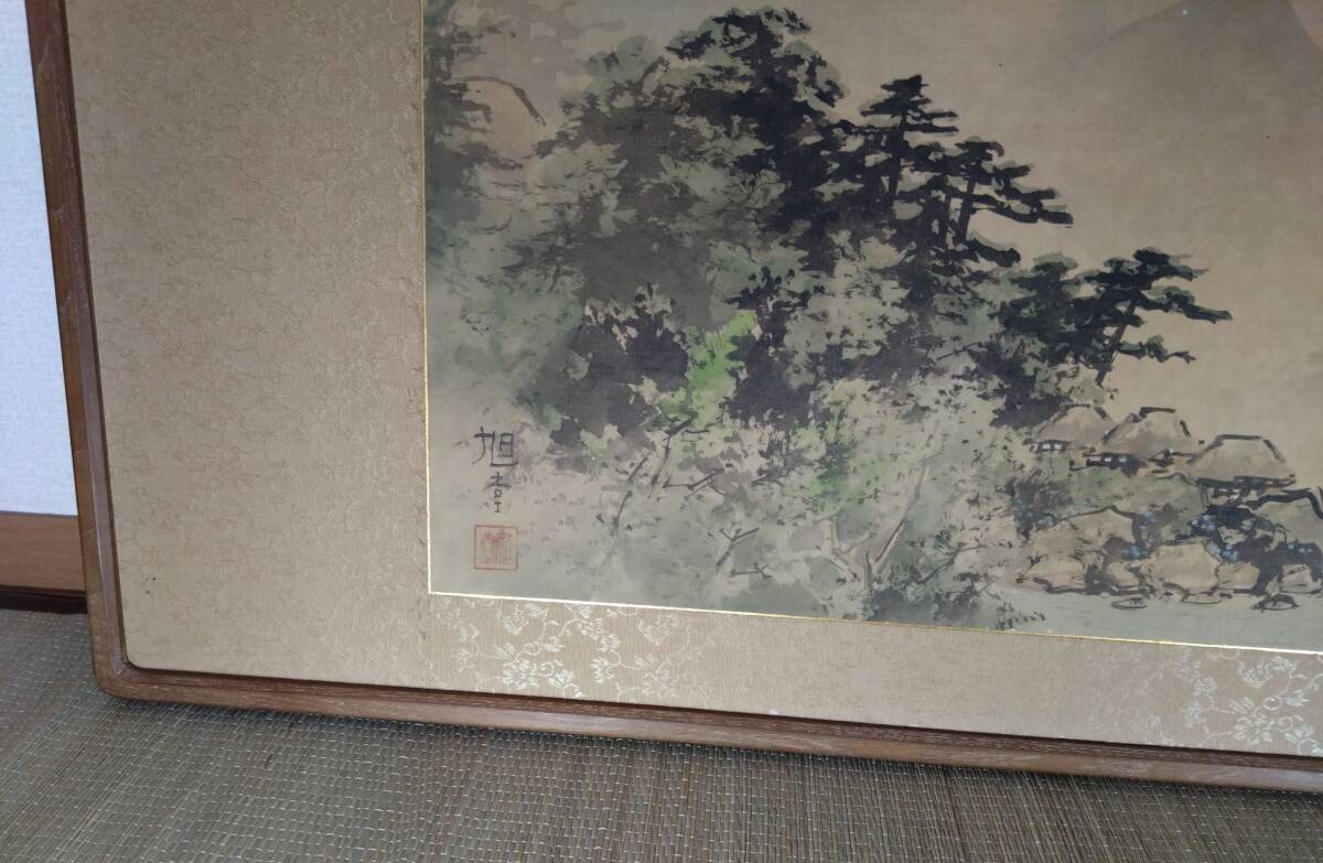 墨絵 旭堂 山村晴日 山水画 日本画 額93×42cm