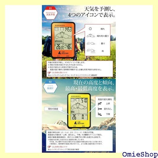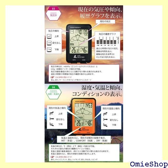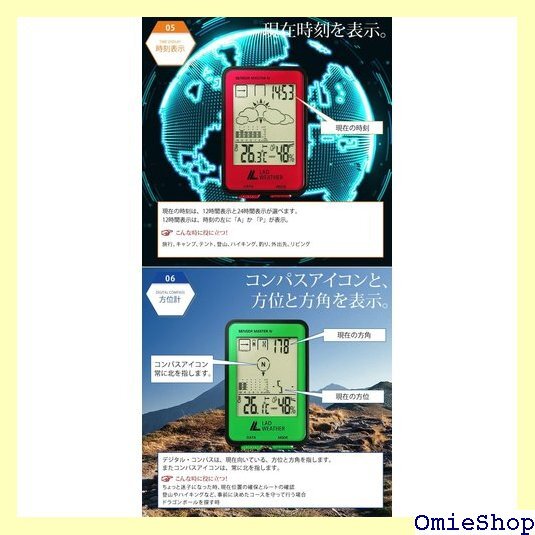 特徴 方位計測, 温度計, 気圧・高度計, 天気予測