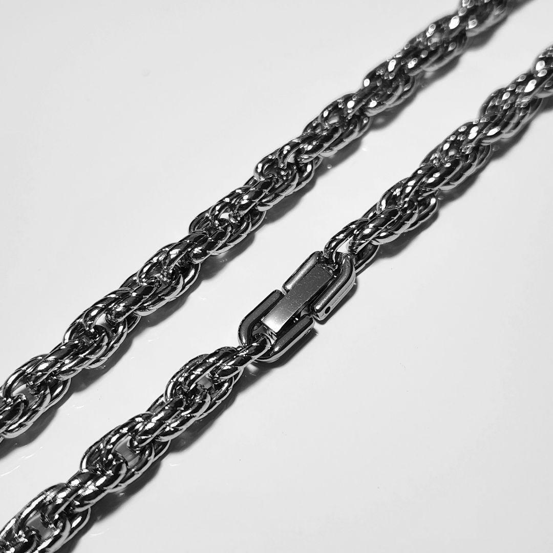 らせん状に複雑に重なり合ったデザインが格好いいロープチェーンネックレスです。