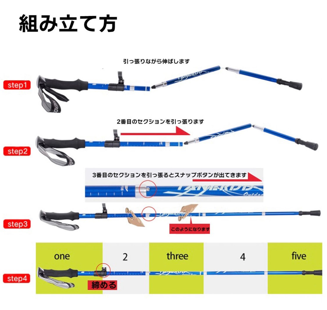 トレッキングステッキ 衝撃吸収 ロゴ付き