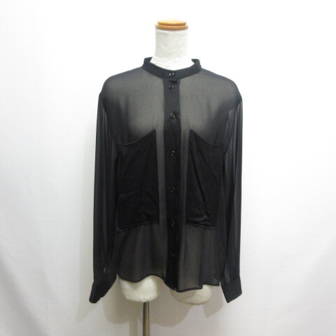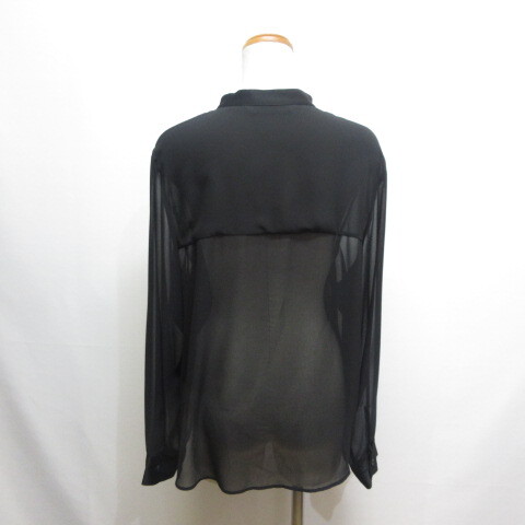 未使用品 ザラ ZARA 長袖 バンドカラー シアー シャツ ブラウス S 黒 ブラック レディース