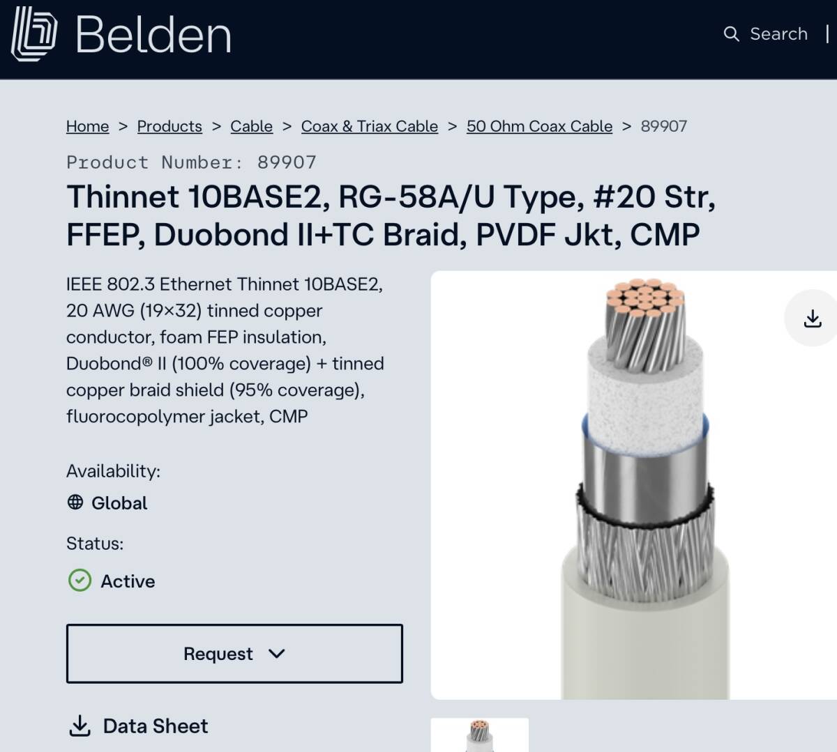 線材はBelden軍用LANケーブル1GHz対応ケーブルの89907を採用しています。